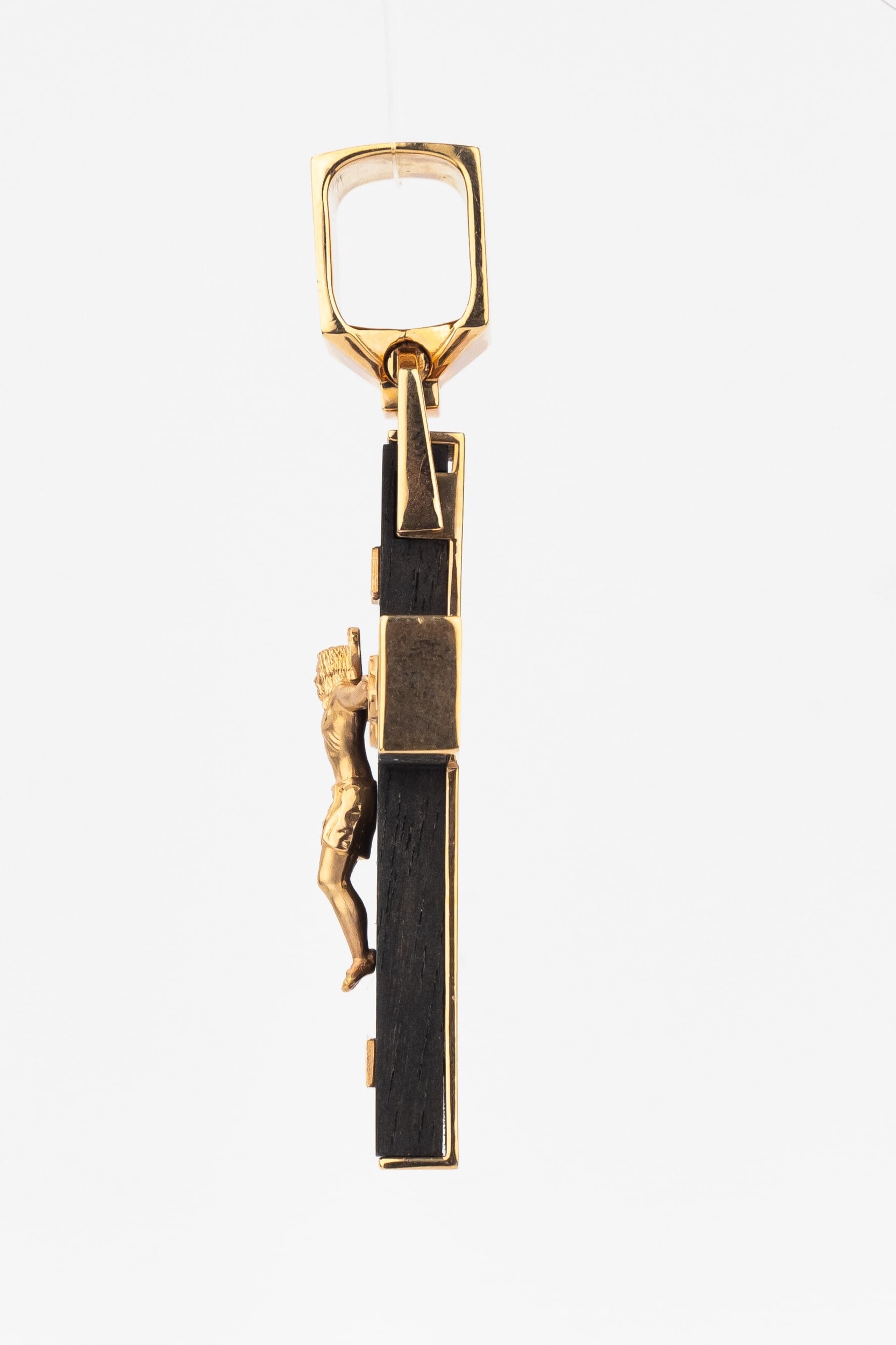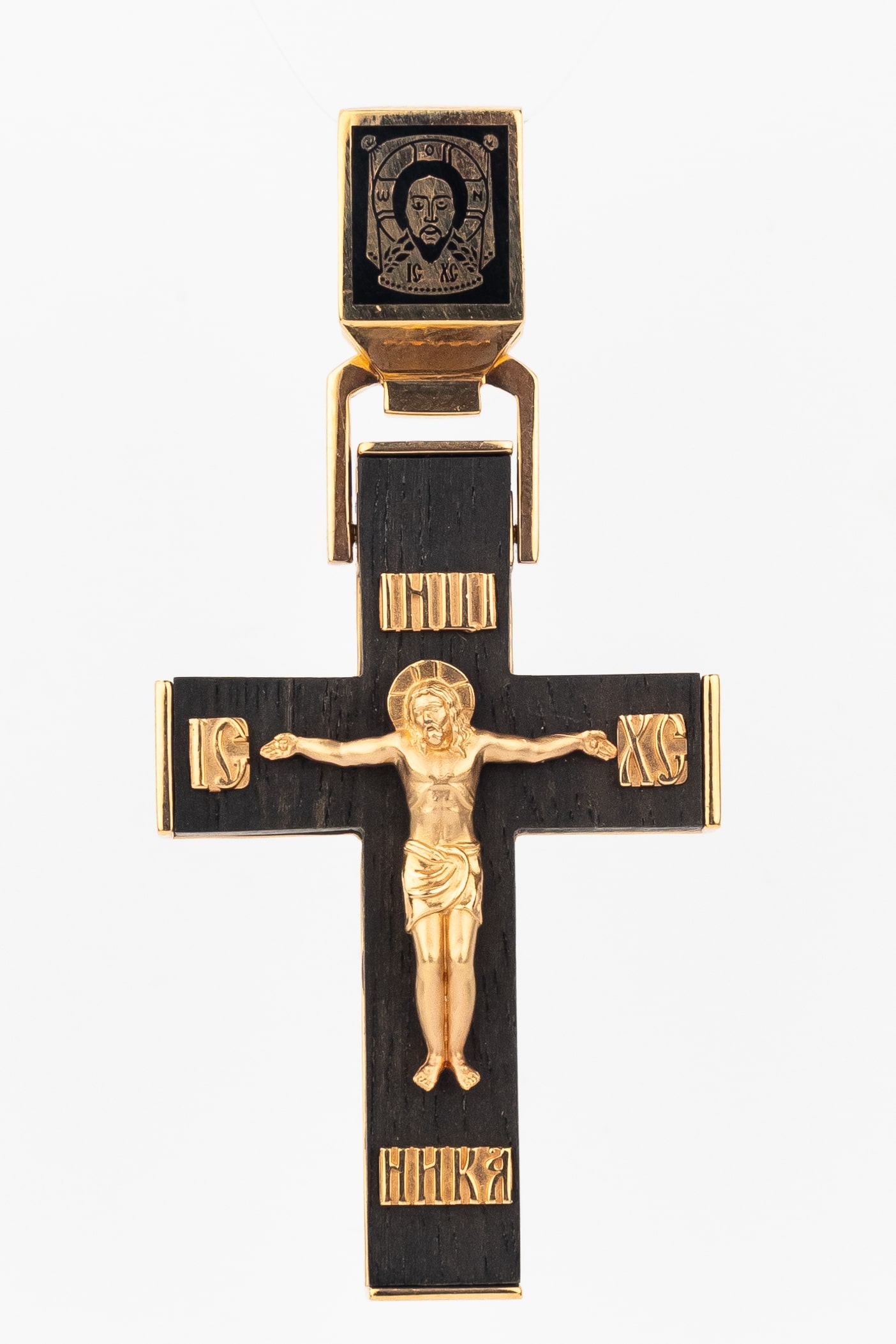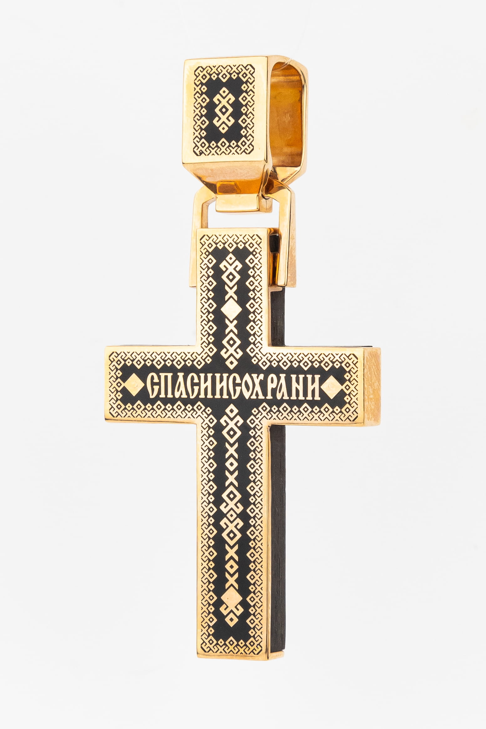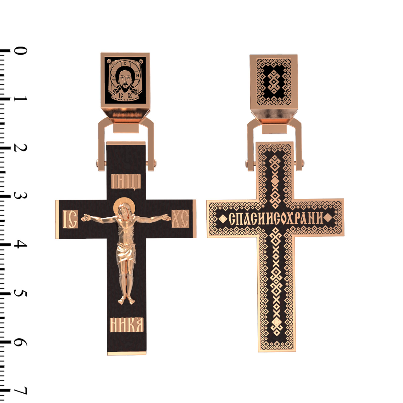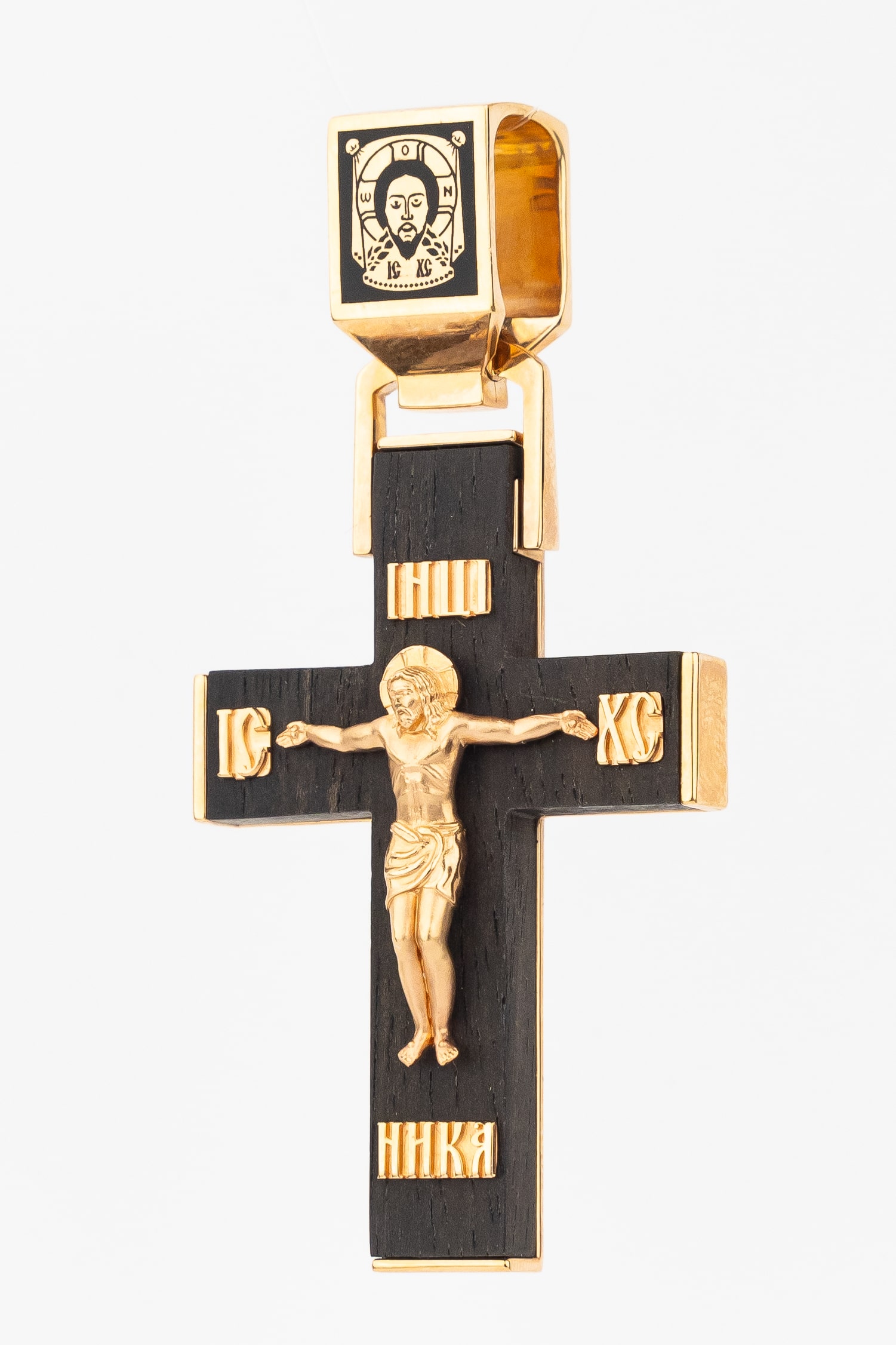 Крест из красного золота 585 пробы c эмалью и эбеновым деревом