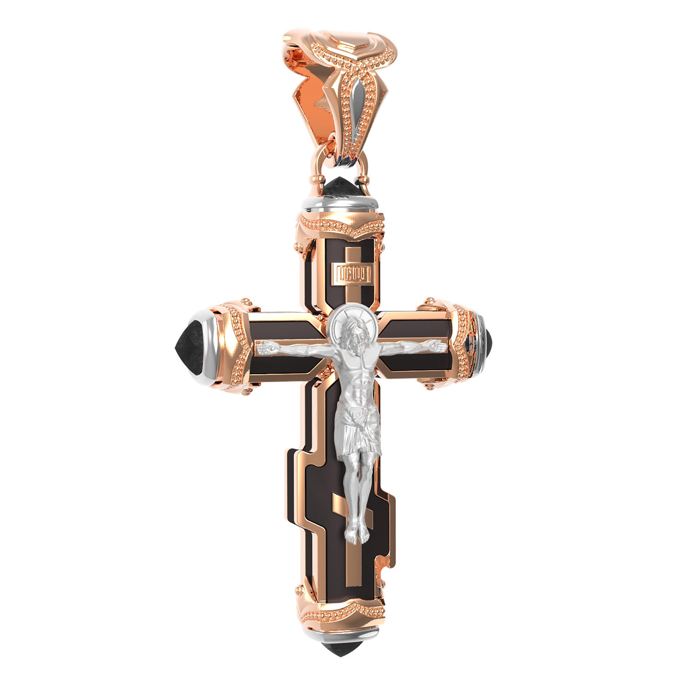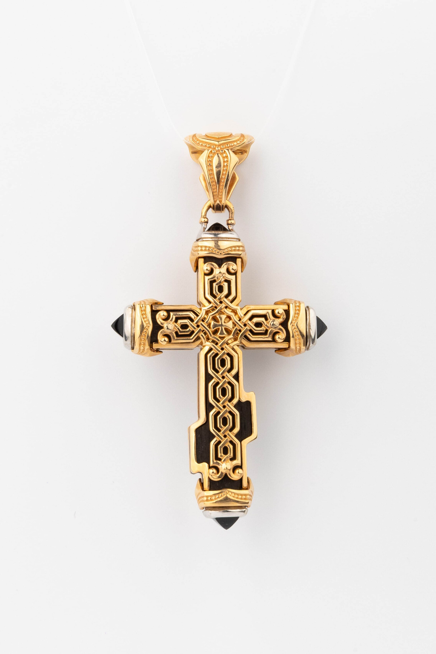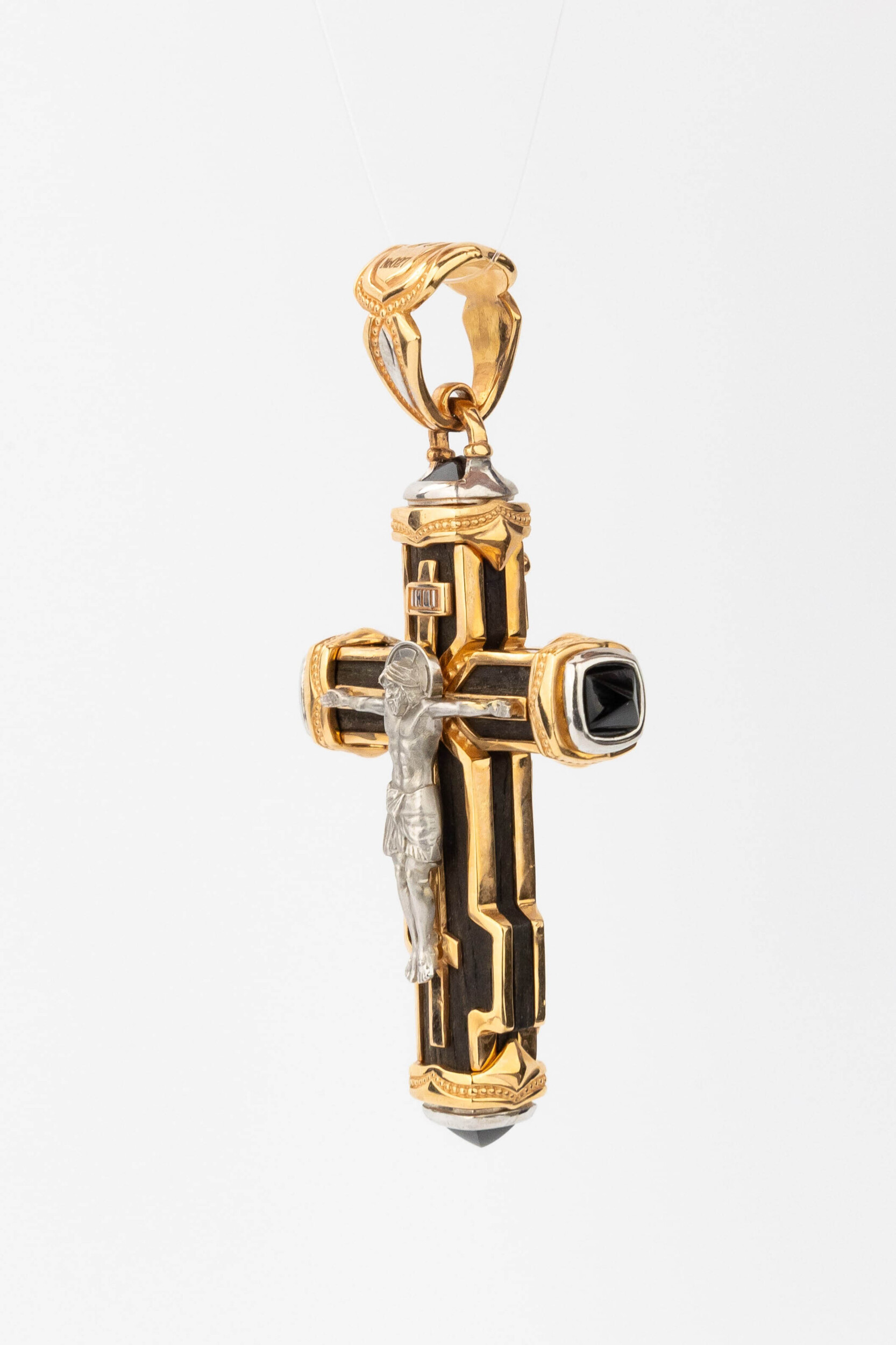 Крест из красного золота 585 пробы c ониксом и эбеновым деревом
