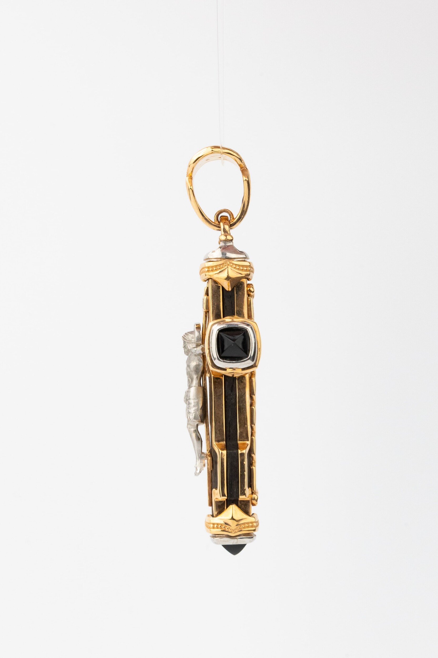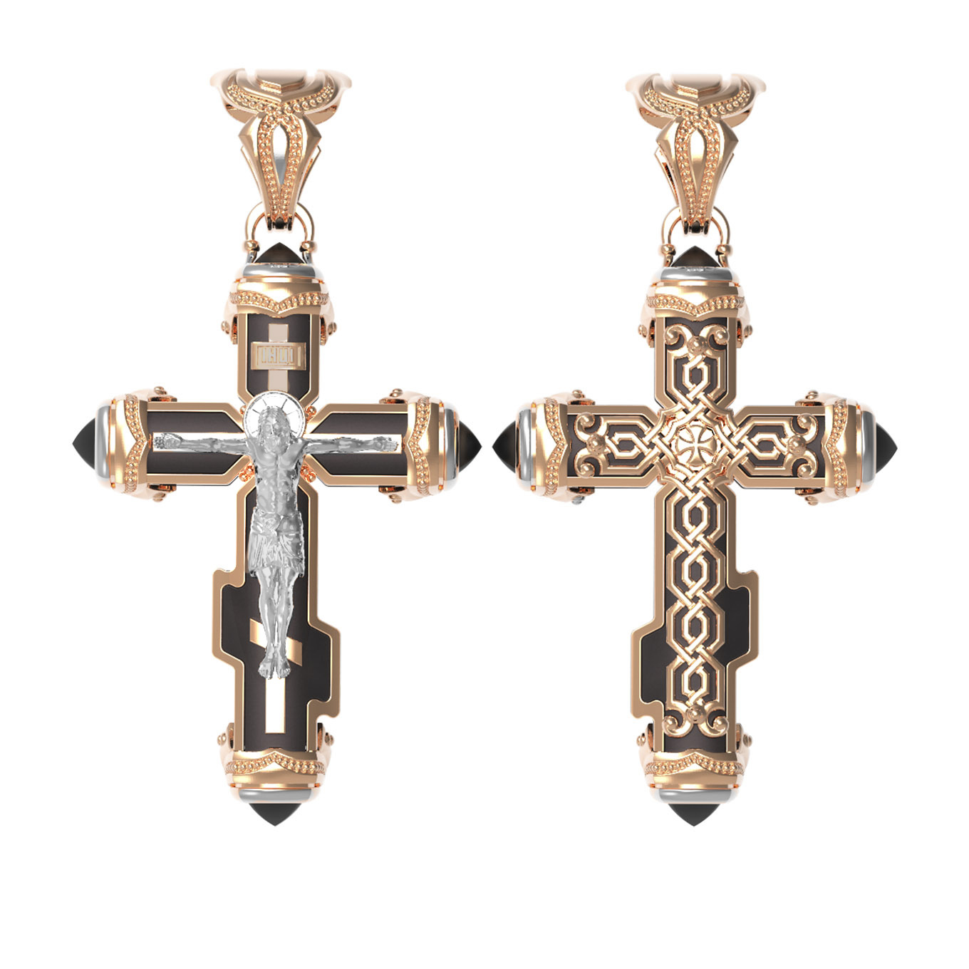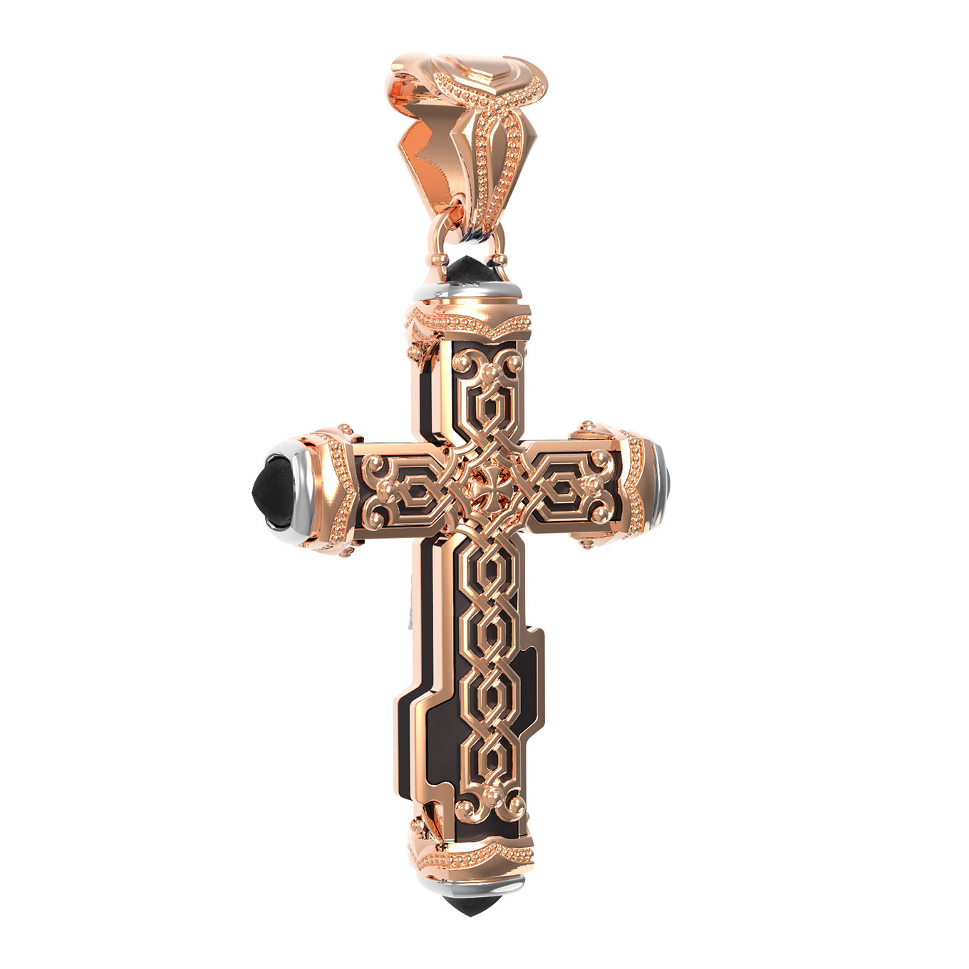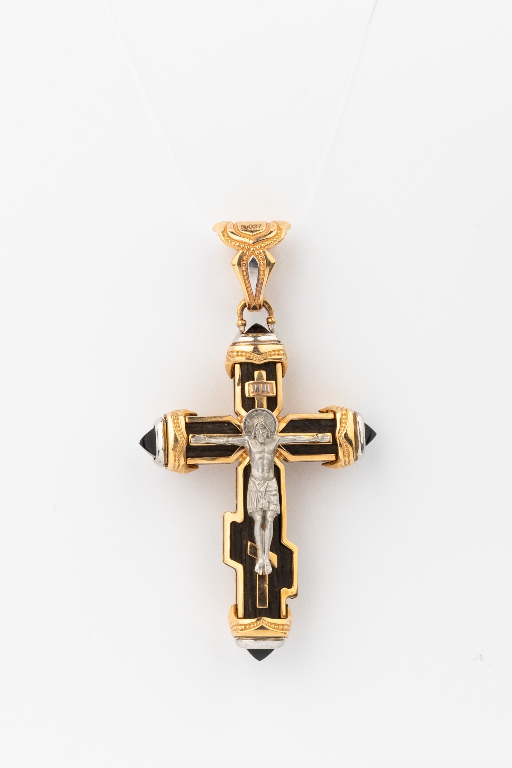 Крест из красного золота 585 пробы c ониксом и эбеновым деревом