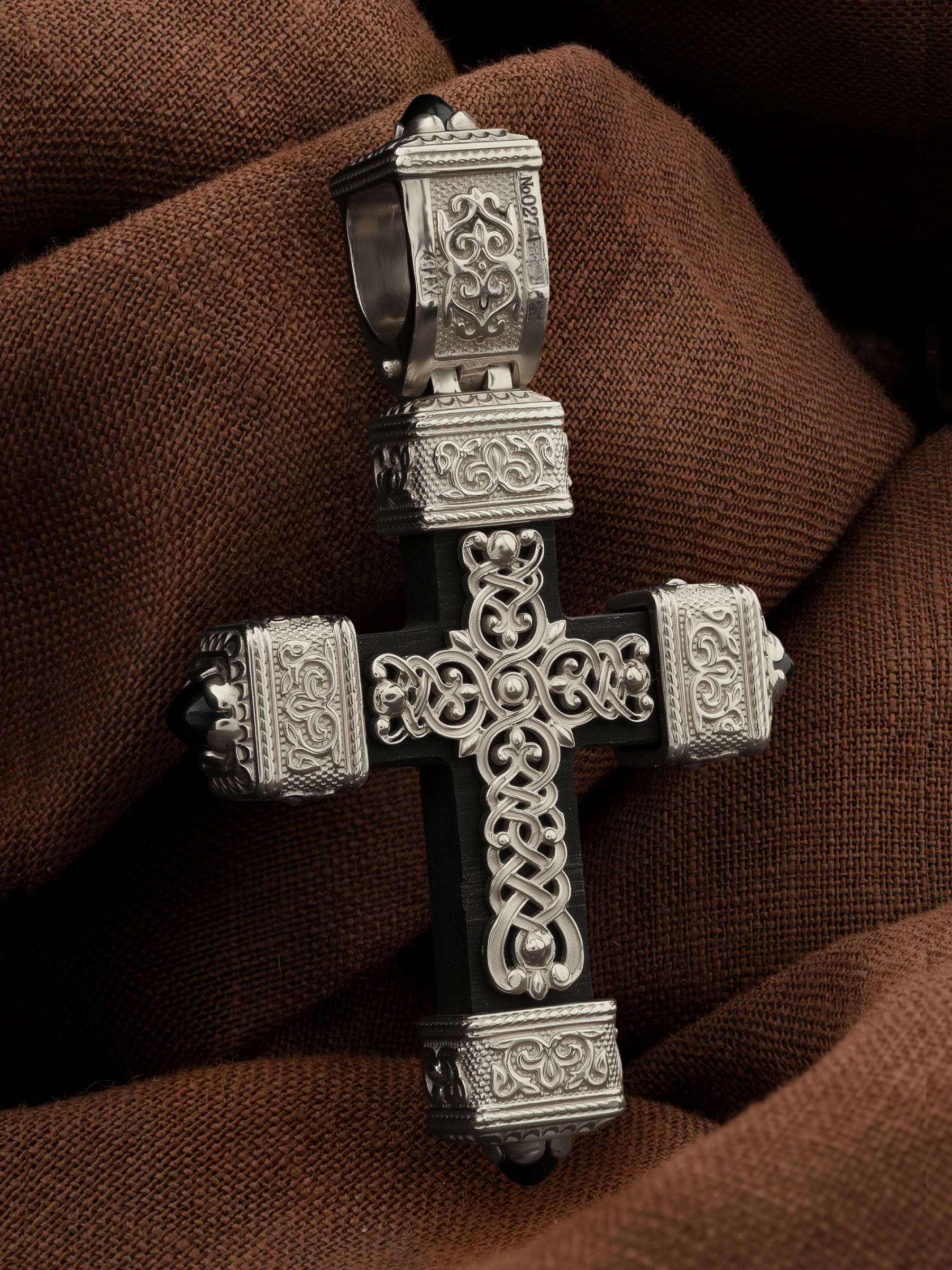 Крест из белого золота c эмалью, ониксом и эбеновым деревом