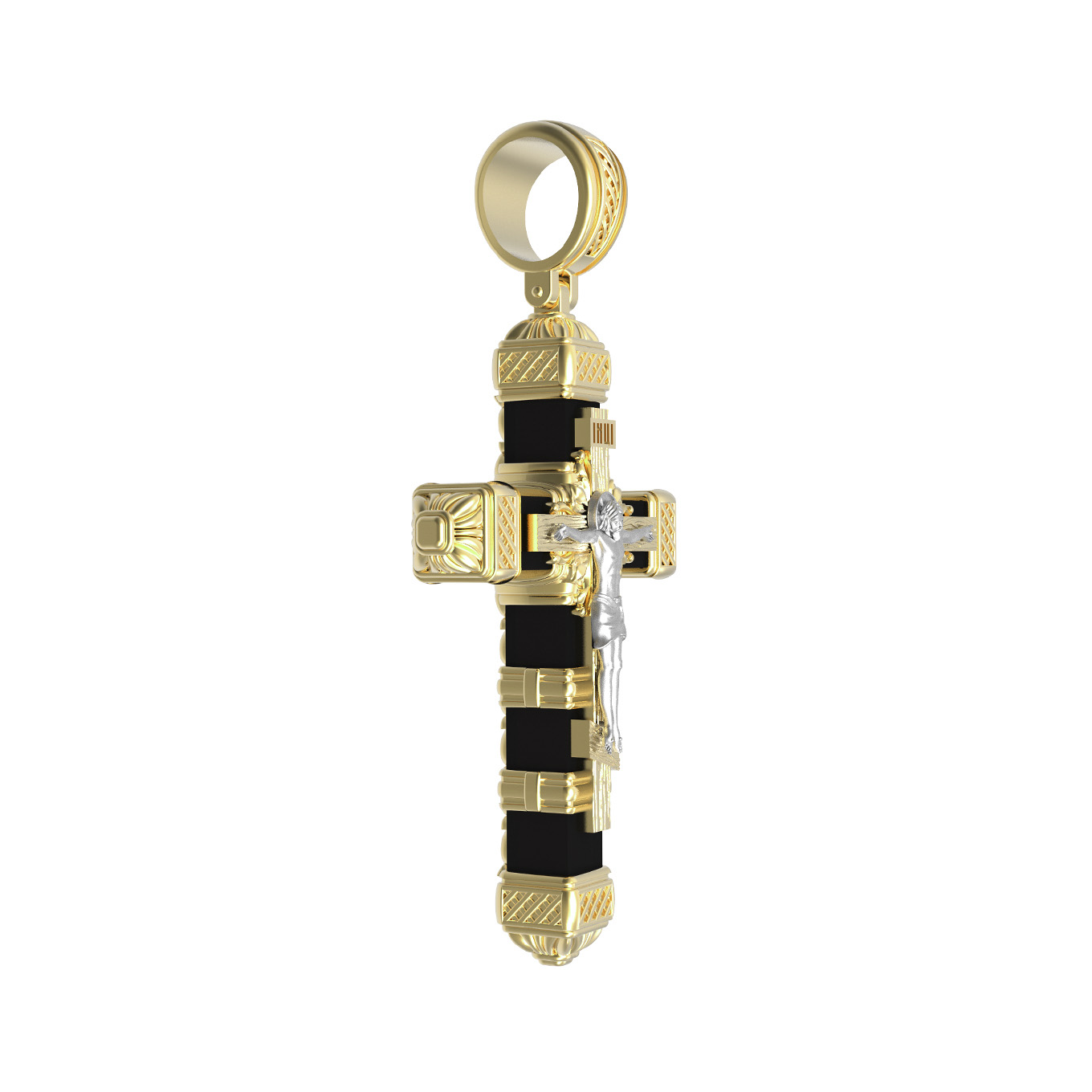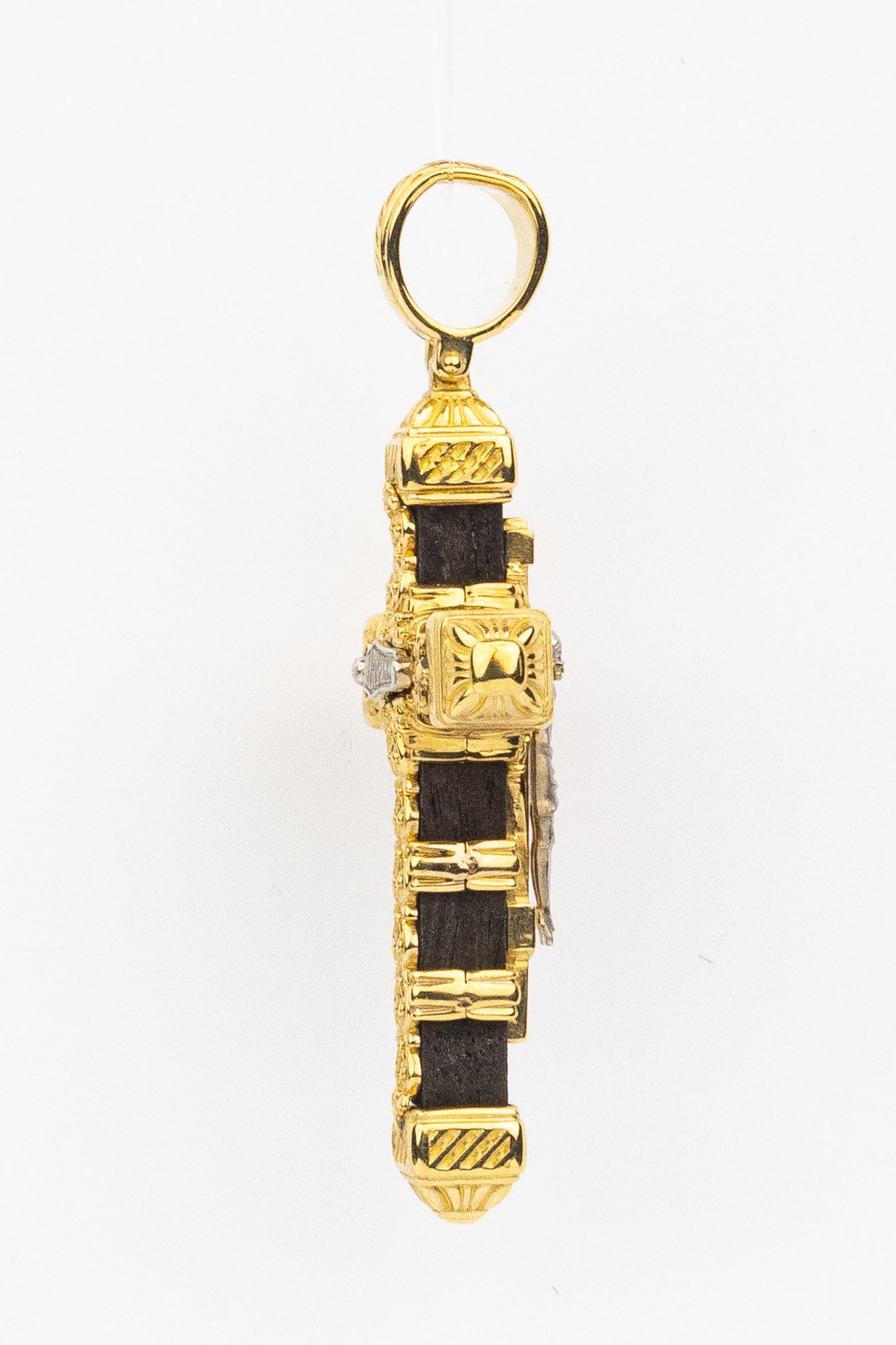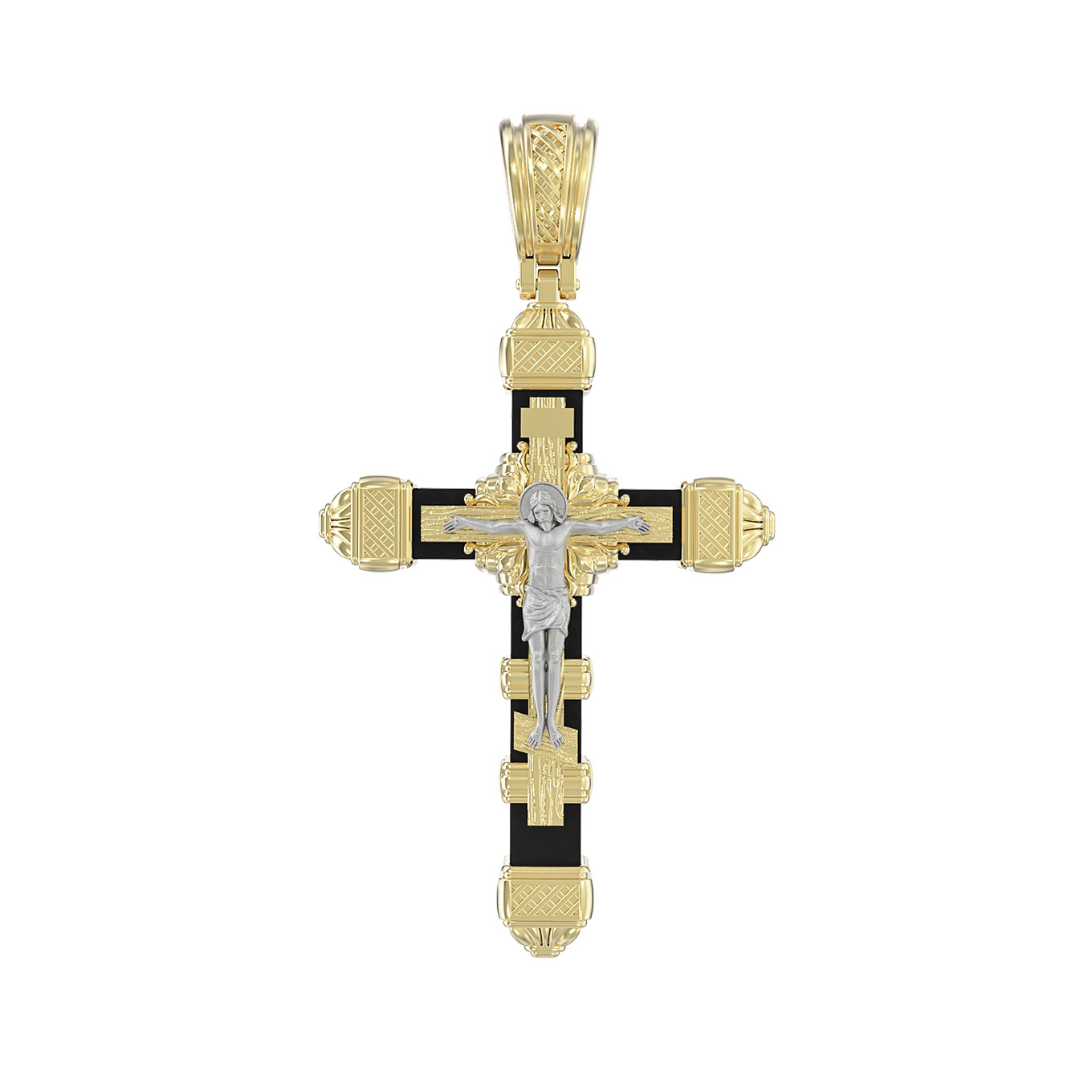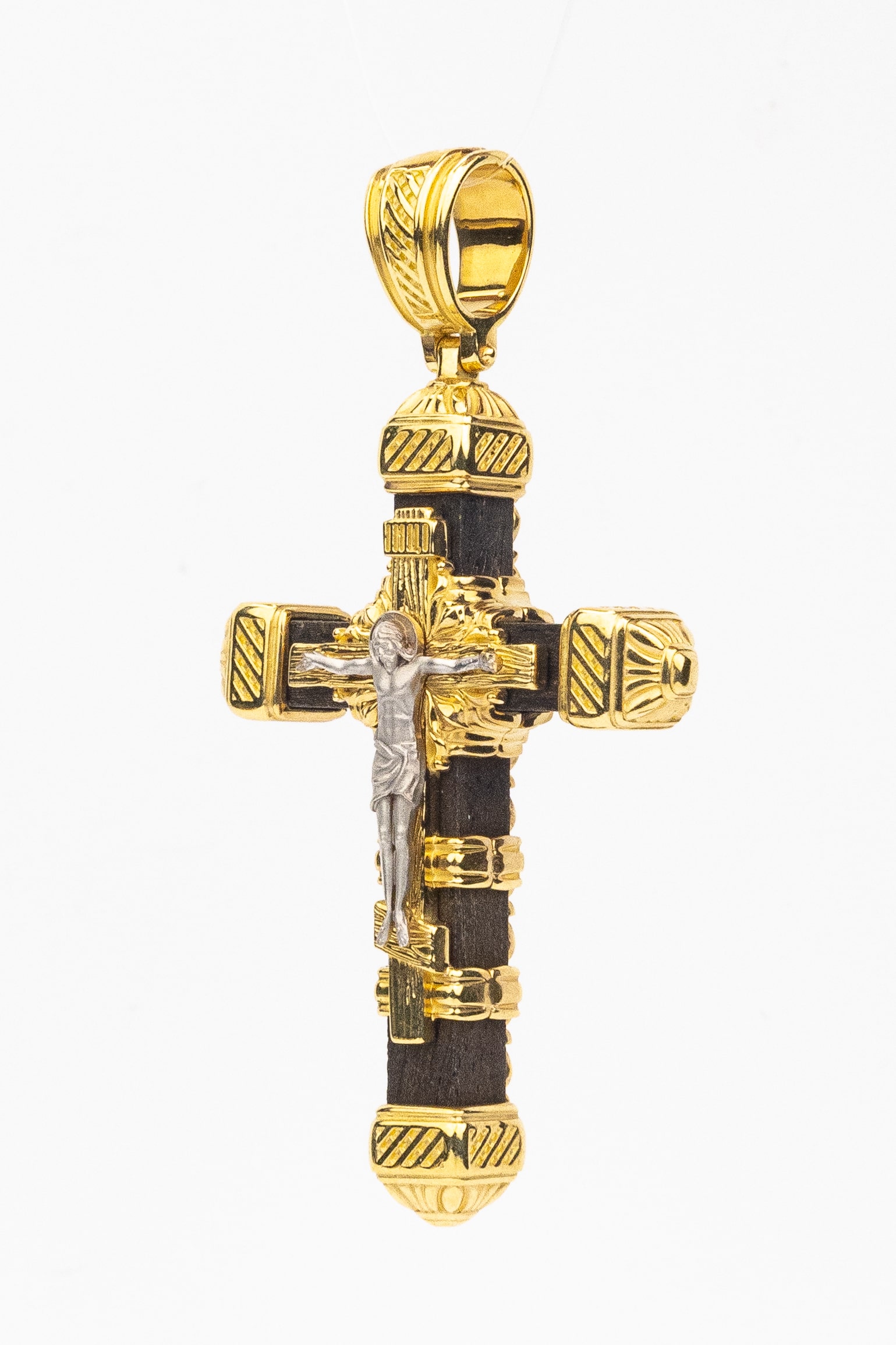 Крест из лимонного золота 585 пробы c эбеновым деревом