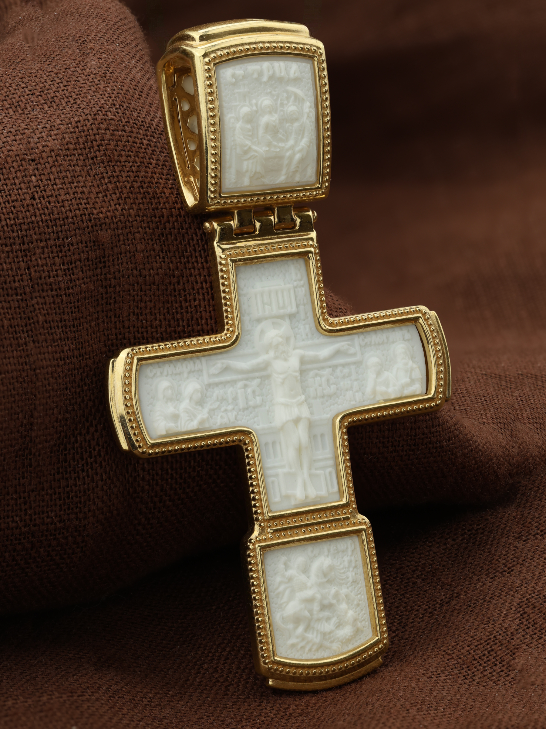 Крест из лимонного золота 585 пробы c бивнем мамонта