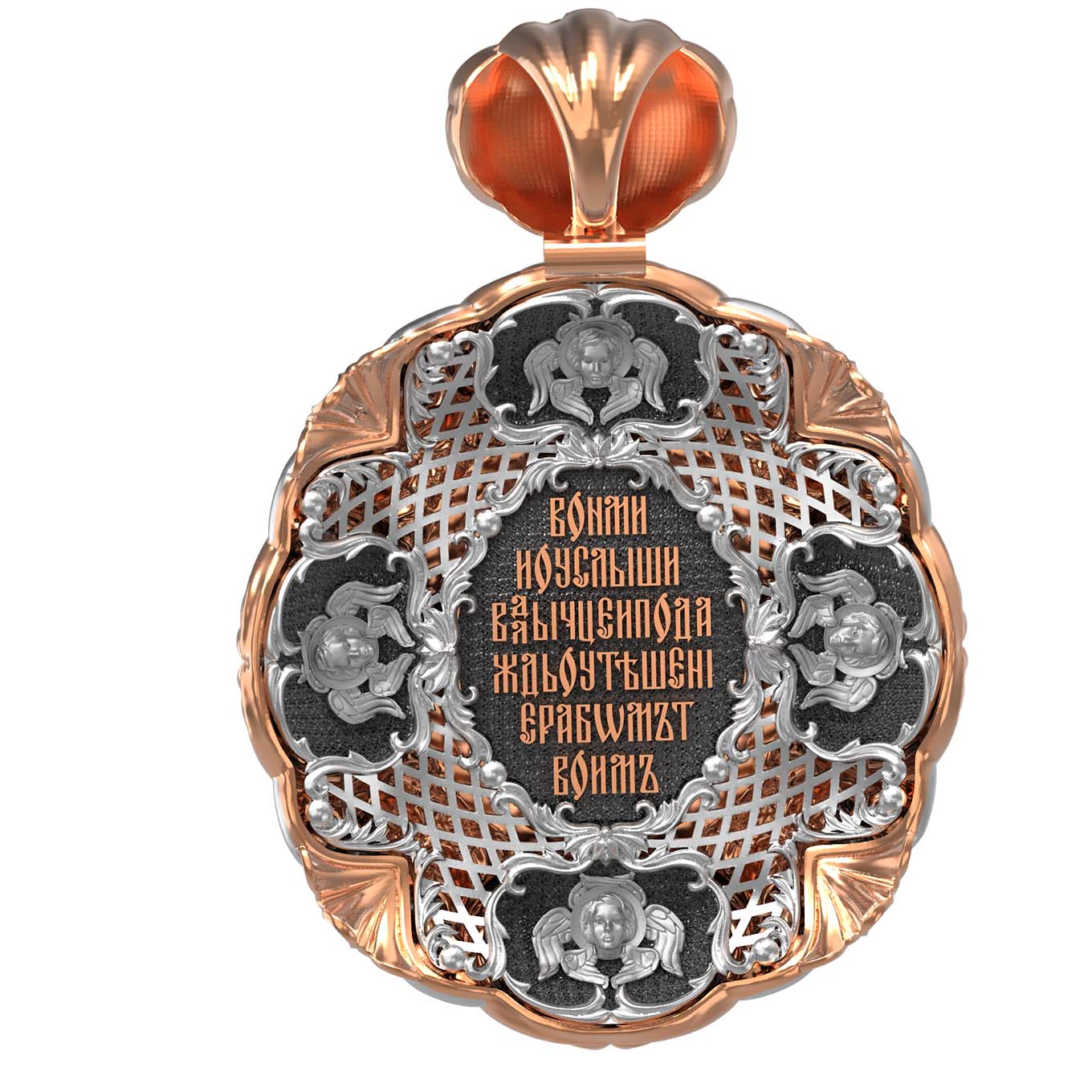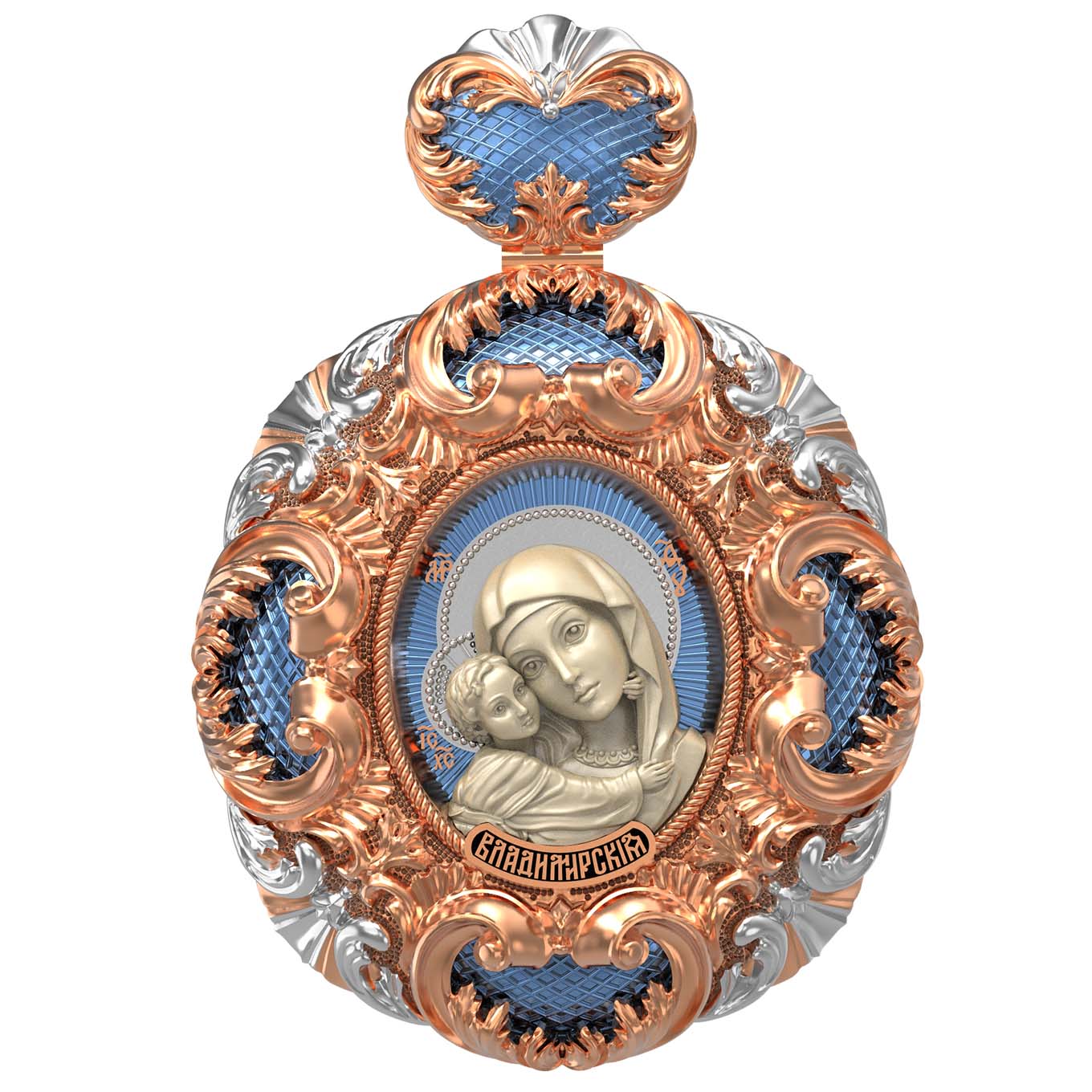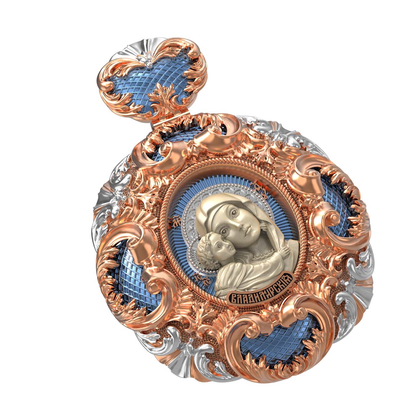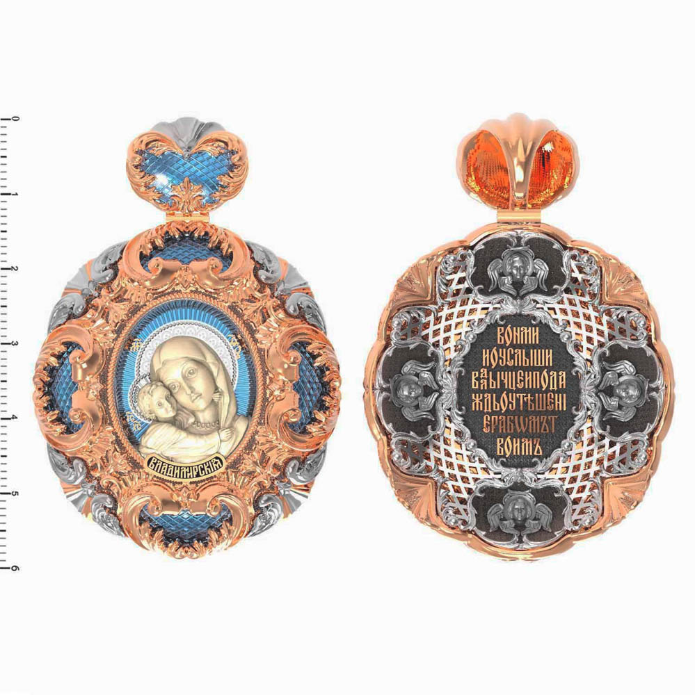 Нательная икона из красного золота 585 пробы c эмалью и бивнем мамонта