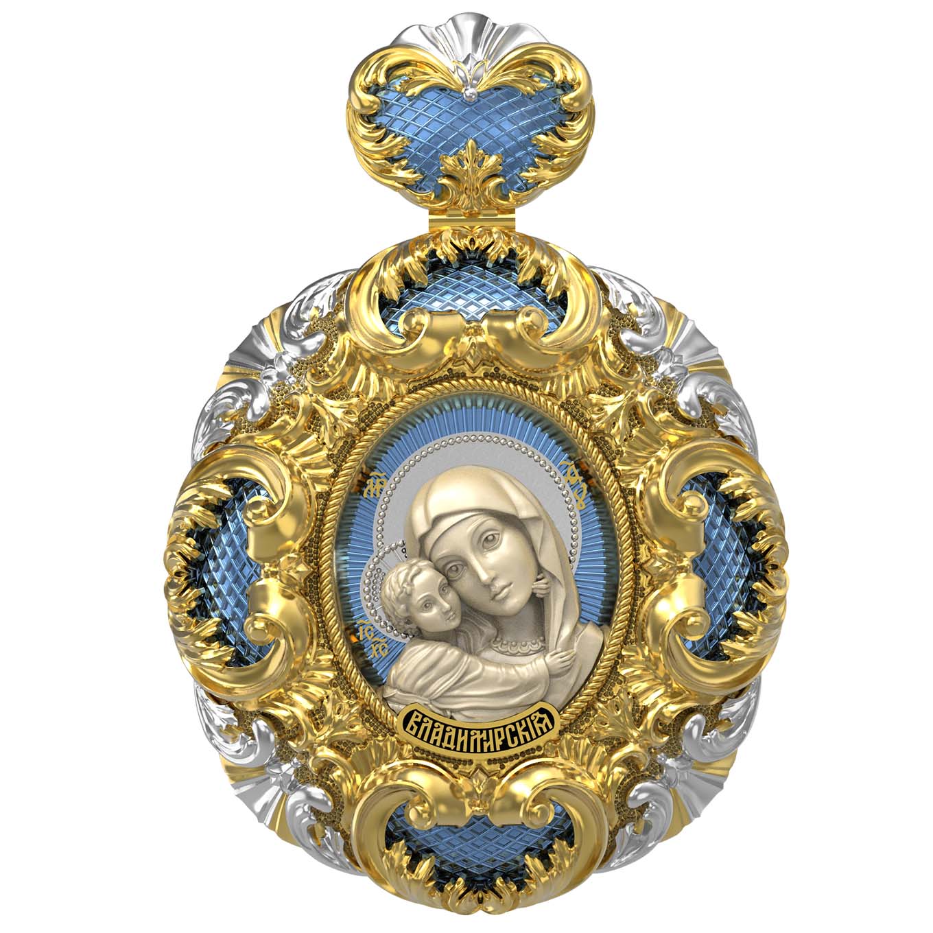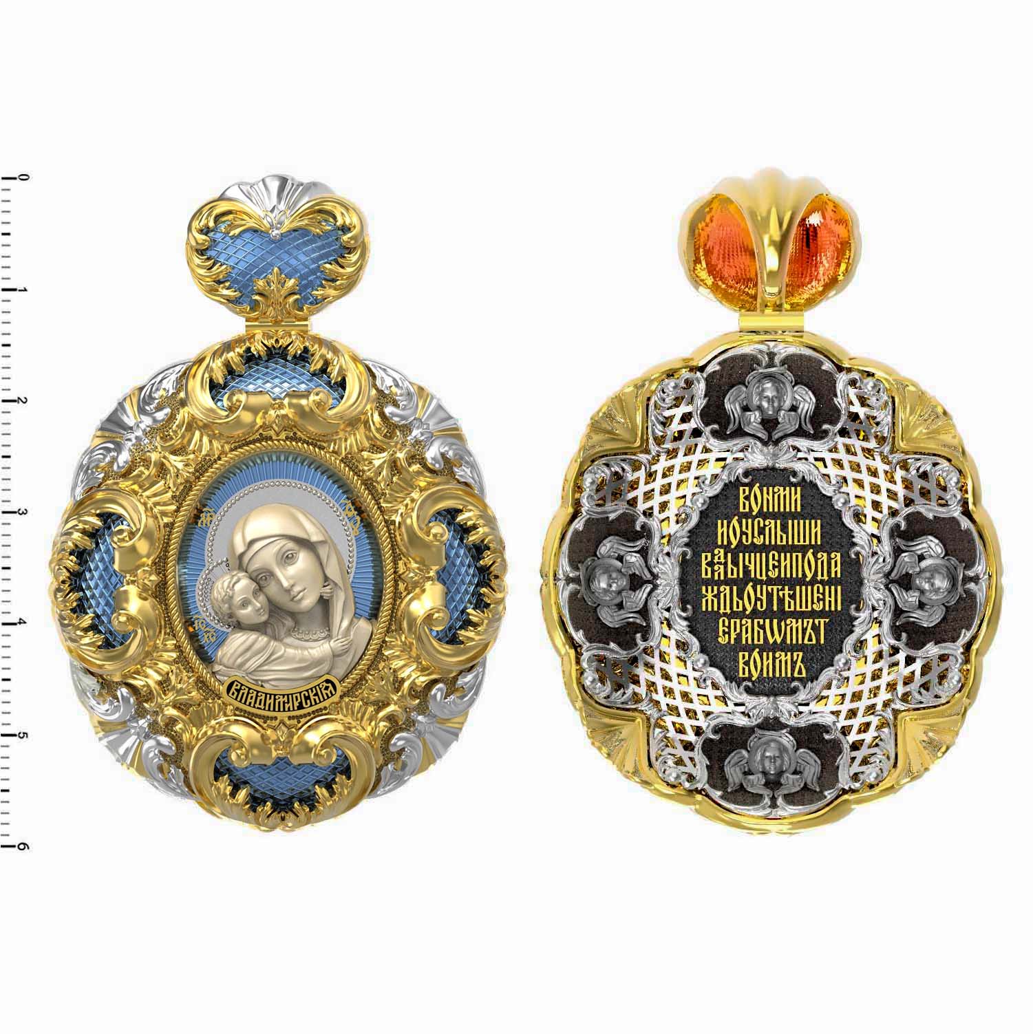 Нательная икона из лимонного золота 585 пробы c эмалью и бивнем мамонта