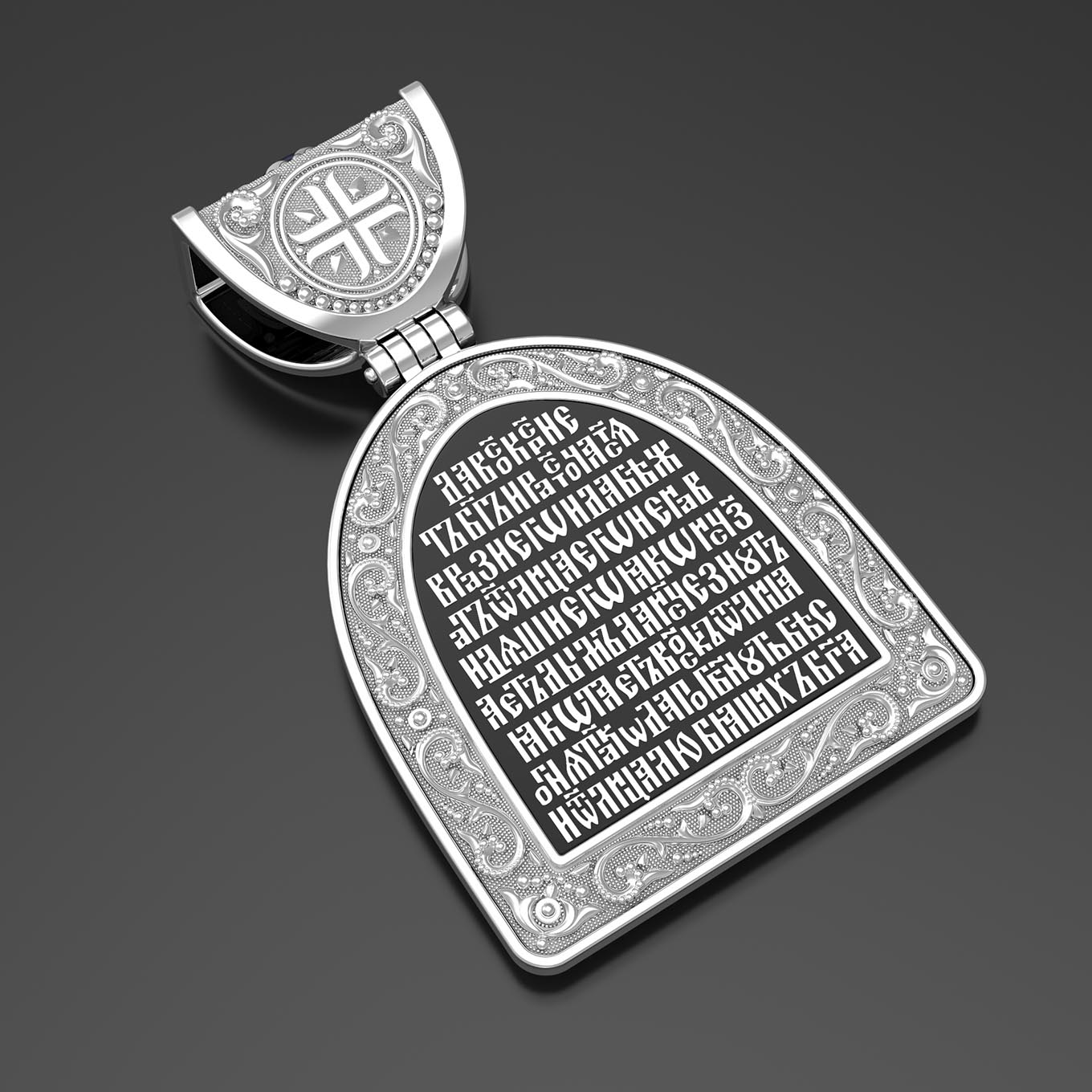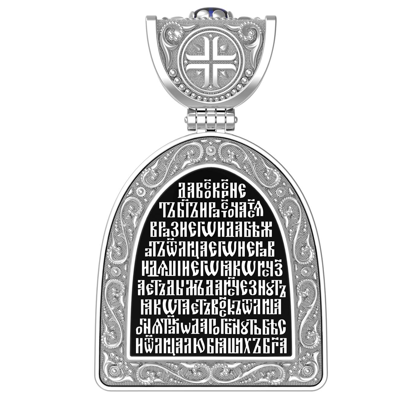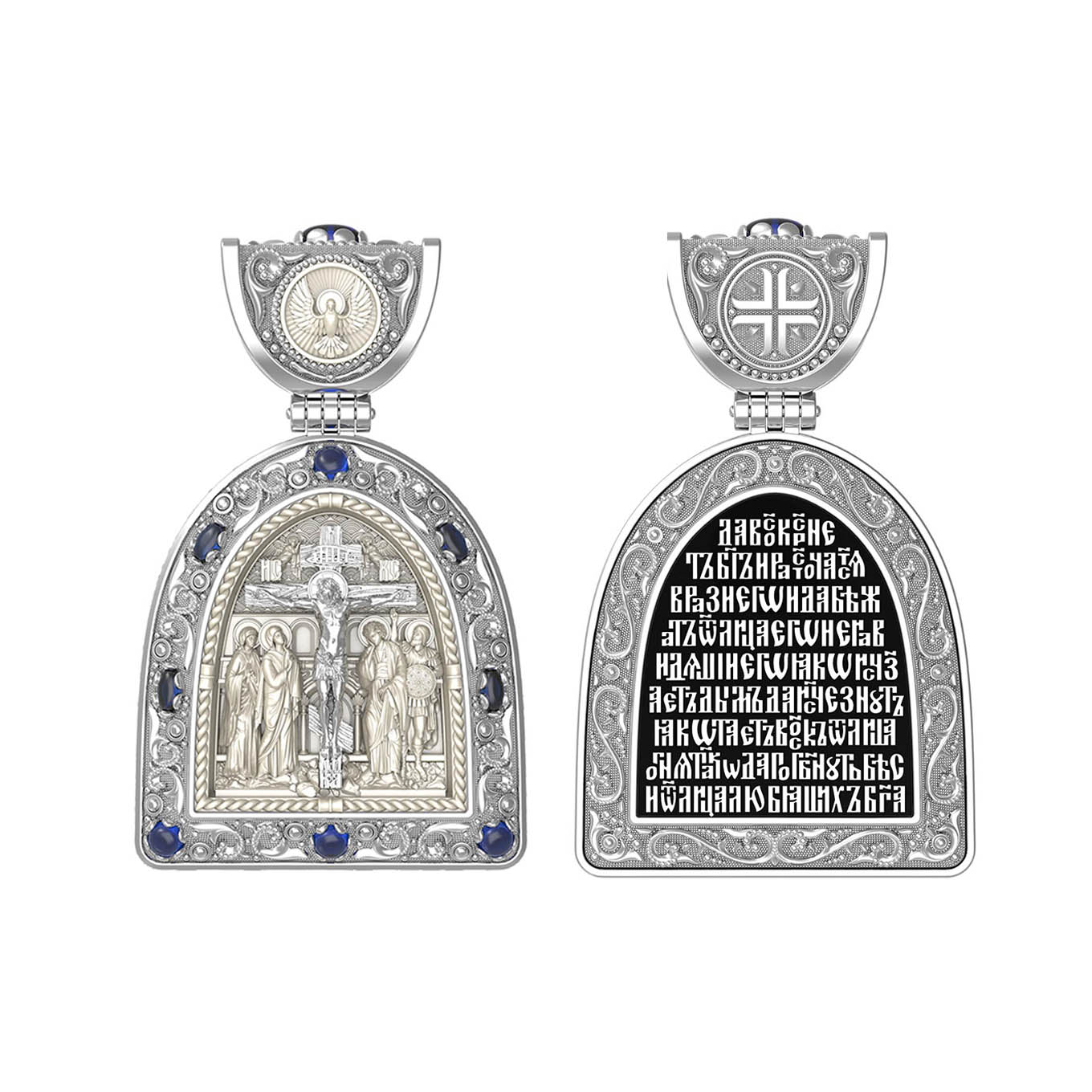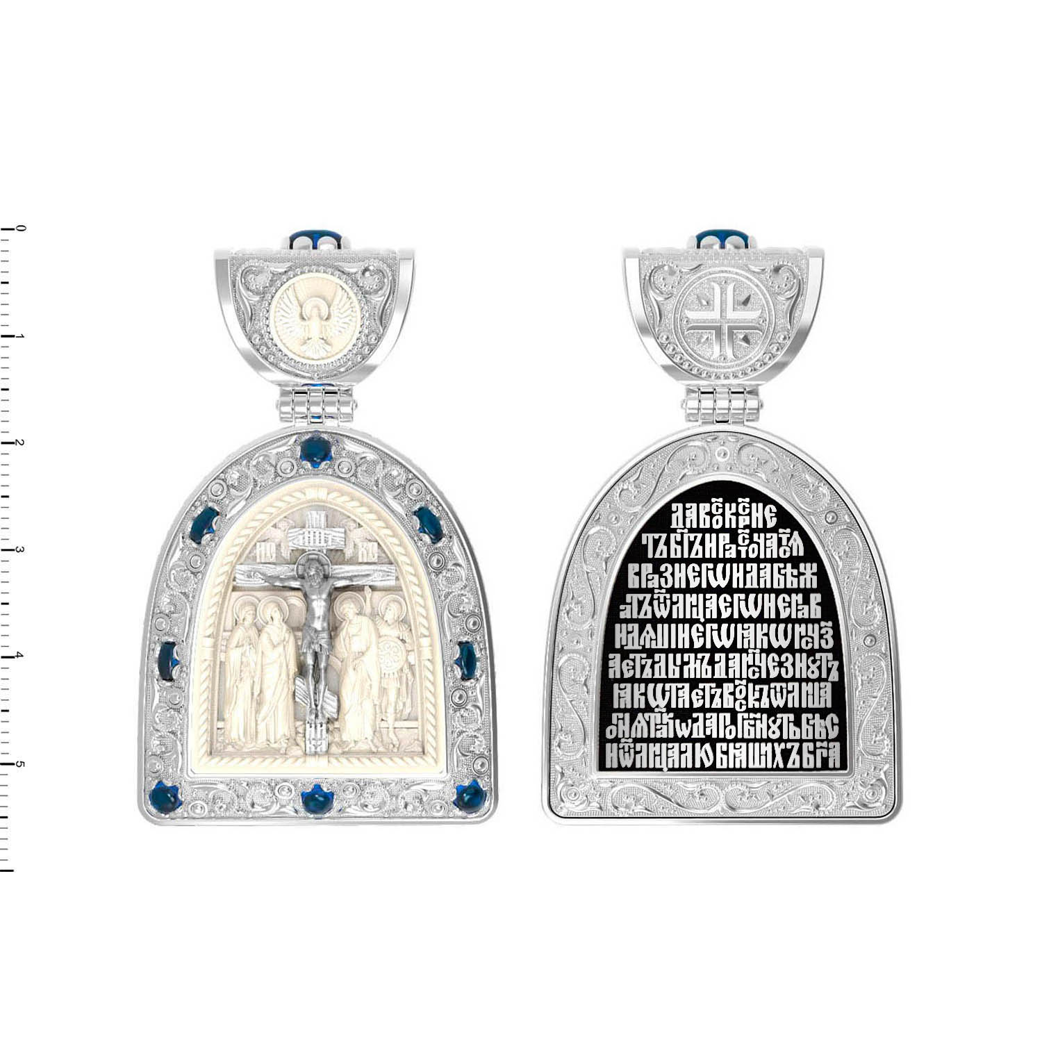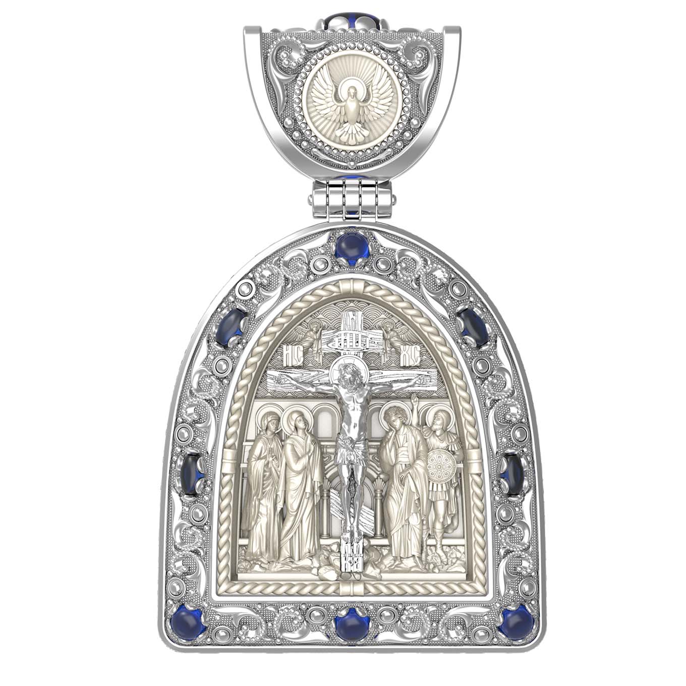 Нательная икона из белого золота 585 пробы c эмалью, сапфиром и бивнем мамонта