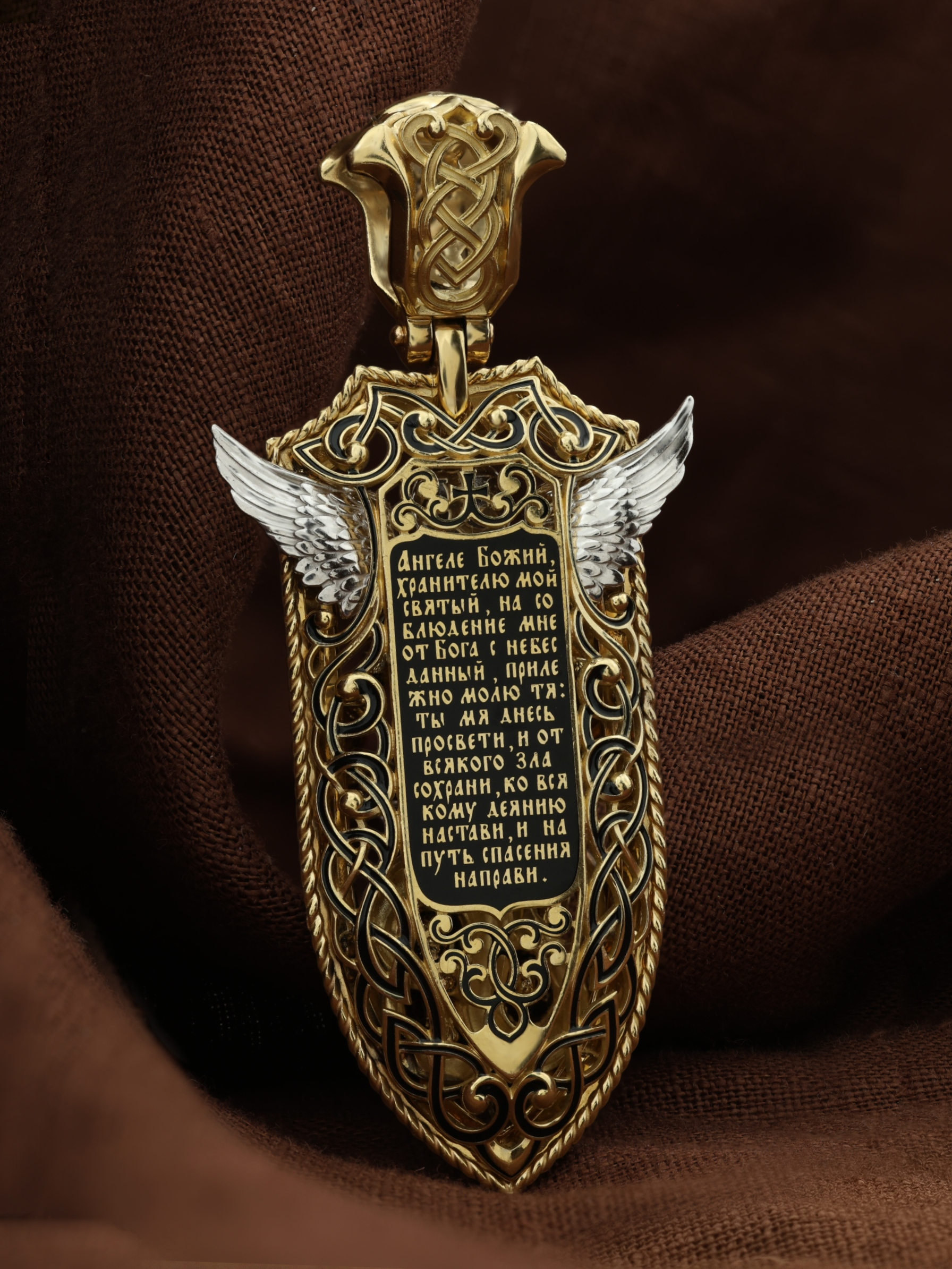 На оборотной стороне образка написана молитва: «Ангеле Божий, хранителю мой святый, на соблюдение мне от Бога с небесе данный! Прилежно молю тя: ты мя днесь просвети, и от всякаго зла сохрани, ко благому деянию настави, и на путь спасения направи.»
