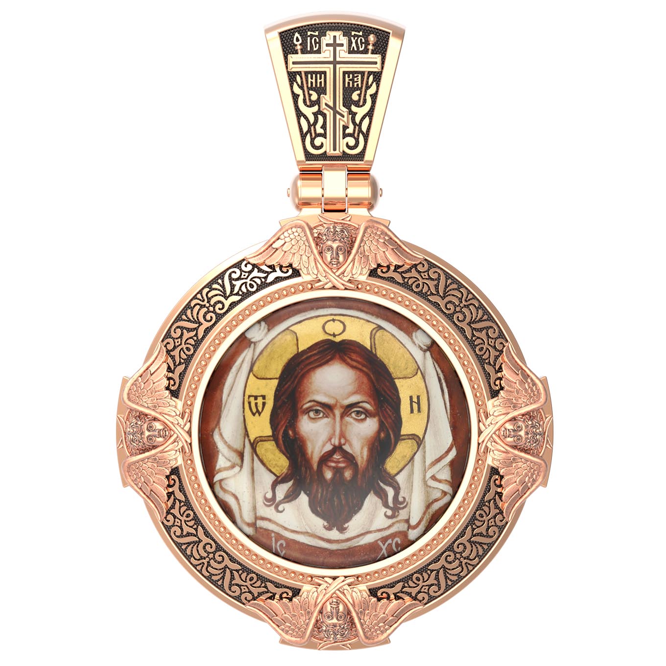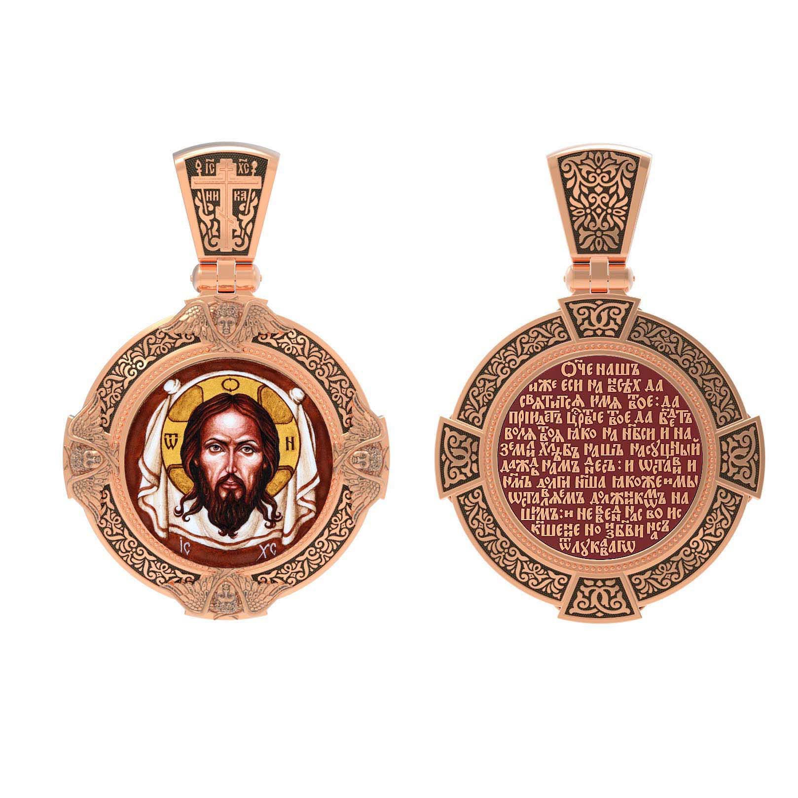 Нательная икона из красного золота 585 пробы c эмалью, иконописью и темперой
