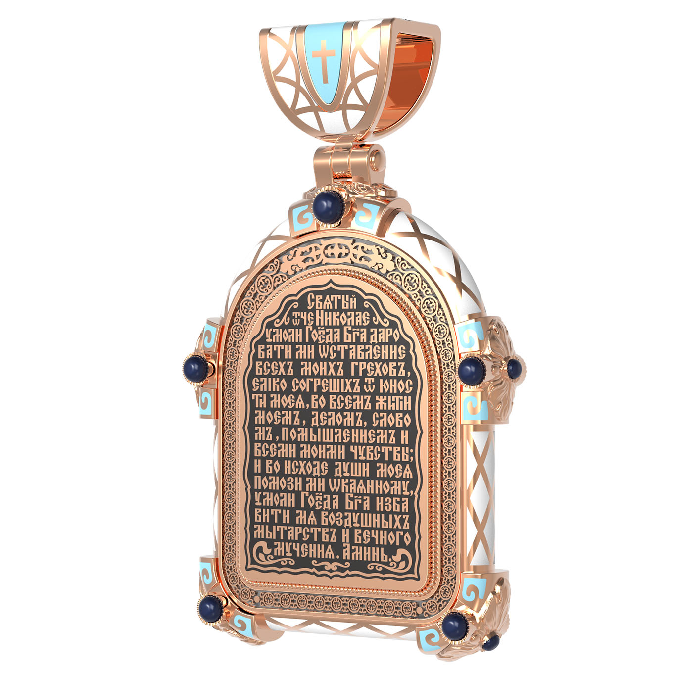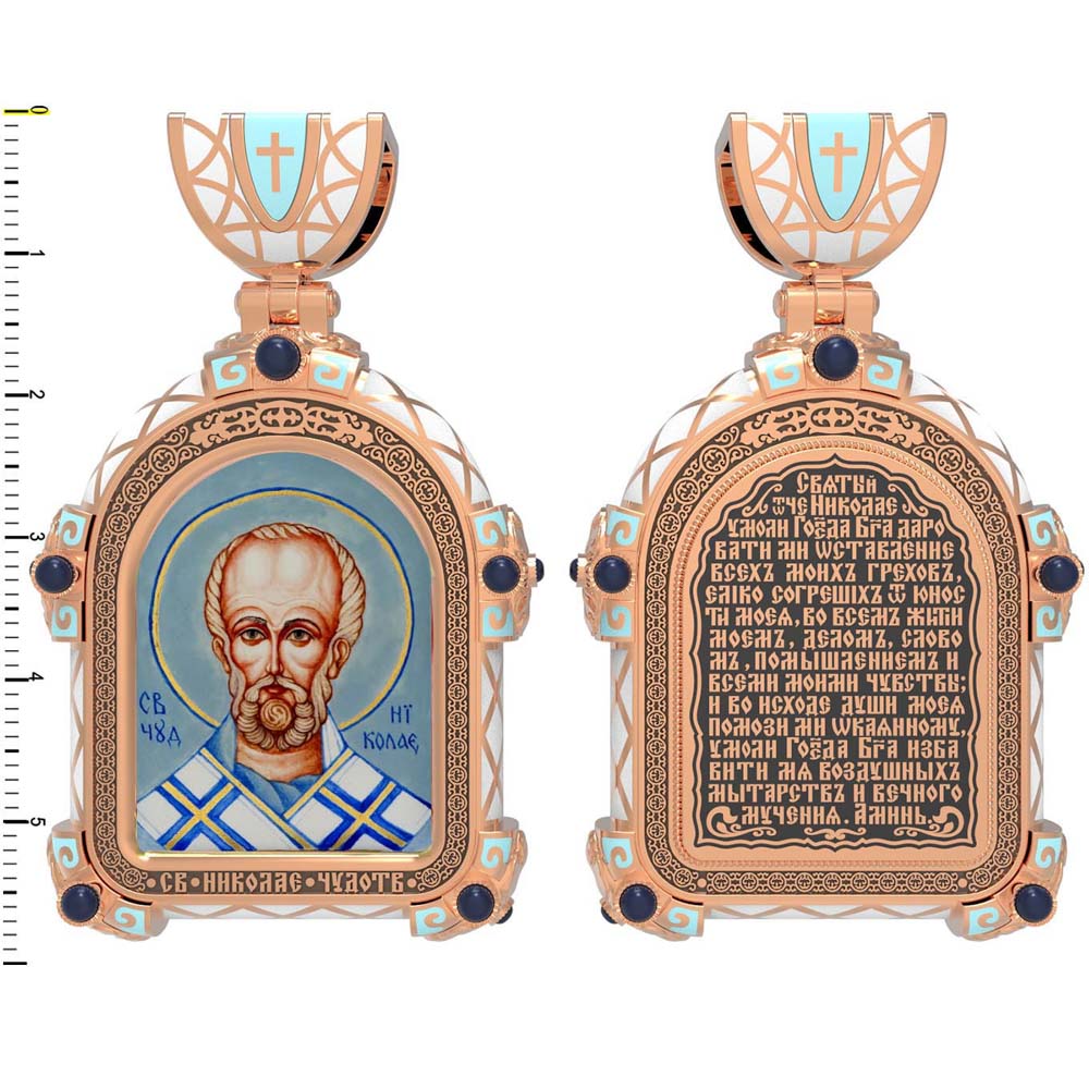 На оборотной стороне образка помещен тропарь Святителю Николаю: «Правило веры и образ кротости, воздержания учителя яви тя стаду твоему яже вещей истина: сего ради стяжал еси смирением высокая, нищетою богатая. Отче священноначальниче Николае, моли Христа Бога спастися душам нашим.»