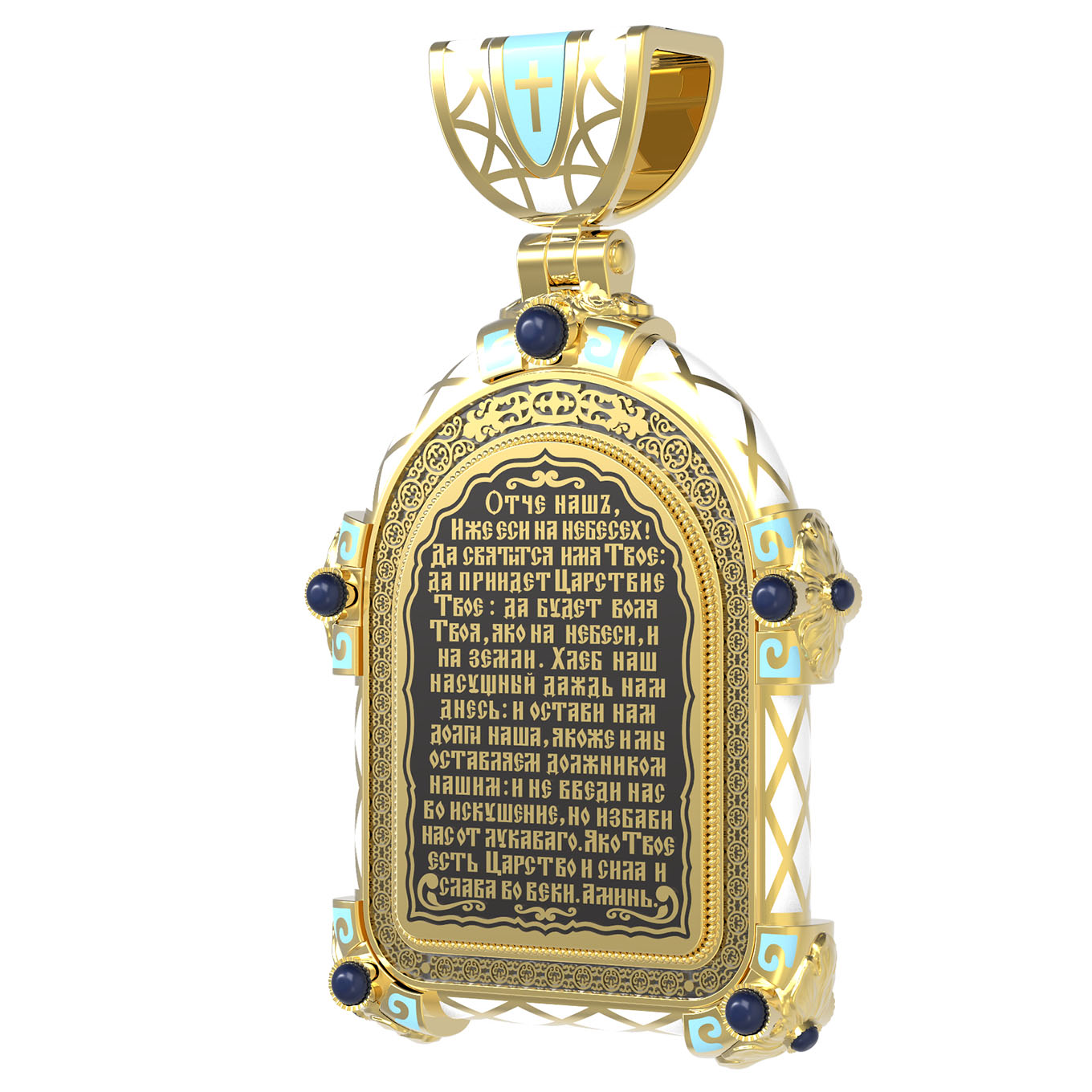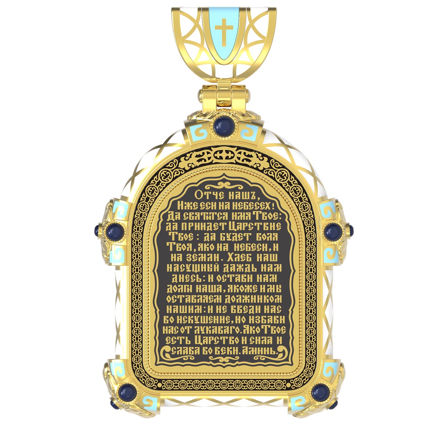 «Отче наш, Иже еси на небесе? х! Да святится имя Твое, да приидет Царствие Твое, да будет воля Твоя, яко на небеси и на земли. Хлеб наш насущный даждь нам днесь; и остави нам долги наша, якоже и мы оставляем должником нашим; и не введи нас во искушение, но избави нас от лукаваго.»