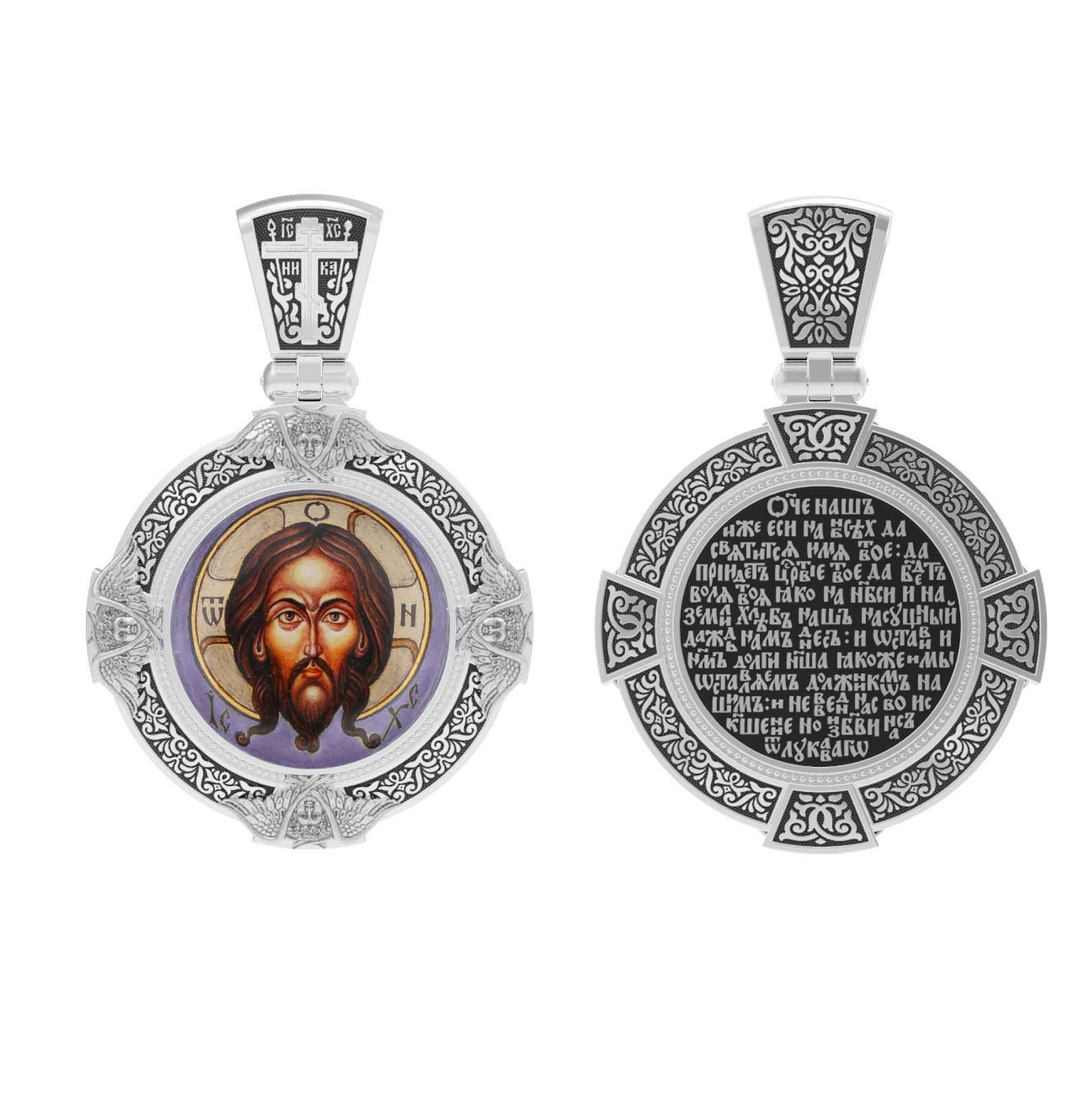 Нательная икона из белого золота 585 пробы c эмалью, иконописью и темперой