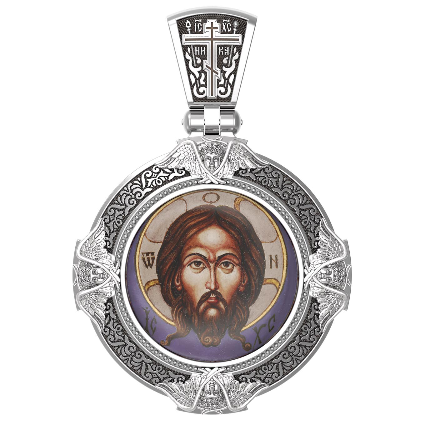 На лицевой стороне образка изображена икона Господа и Спасителя нашего Иисуса Христа — Господь Вседержитель или Пантократор (от греч. всевластный, всесильный). Он представлен как Царь Небесный и будущий Судия мира. Именование Иисуса «Вседержителем» указывает, с одной стороны, на Его Божественную природу: «Аз есмь Альфа и Омега, начало и конец, говорит Господь, Который есть и был и грядет, Вседержитель» (Откр. 1: 8). С другой стороны, такое именование связано и с человеческой природой Христа, искупившего крестной жертвой людские грехи и обновившего тем самым человеческую природу. Главу Спасителя осеняет нимб, на нем угадывается крест. Крест символизирует голгофскую жертву Спасителя. По греческой традиции, на нимбе написаны буквы Омега, Омикрон, Ню — вместе они обозначают слово Сущий, одно из имен и характеристику Бога, согласно Священному Писанию.