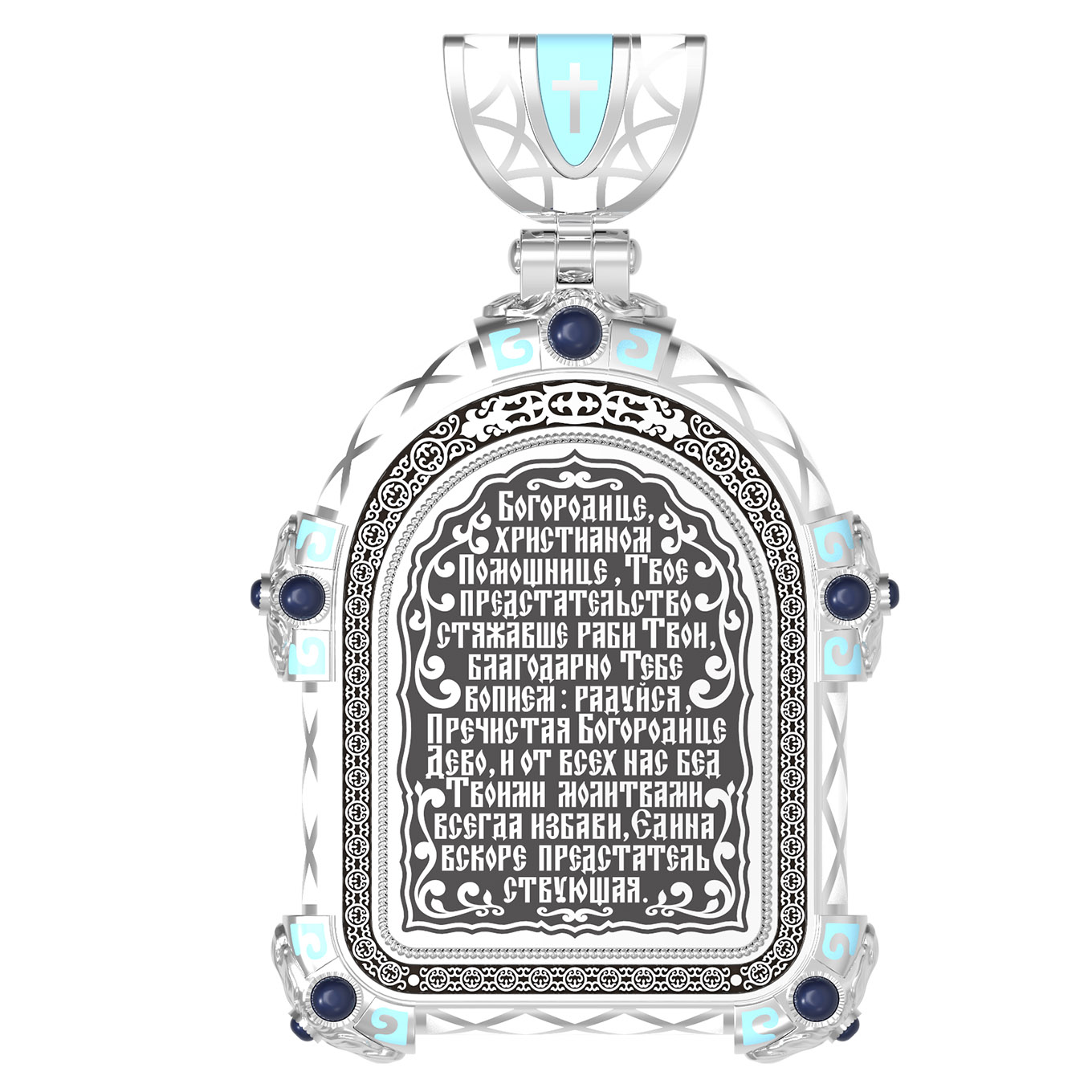 На оборотной стороне образка написана молитва: «Богородице, христианом Помощнице, Твое предстательство стяжавше раби Твои, благодарно Тебе вопием: радуйся, Пречистая Богородице Дево, и от всех нас бед Твоими молитвами всегда избави, Едина вскоре предстательствующая».