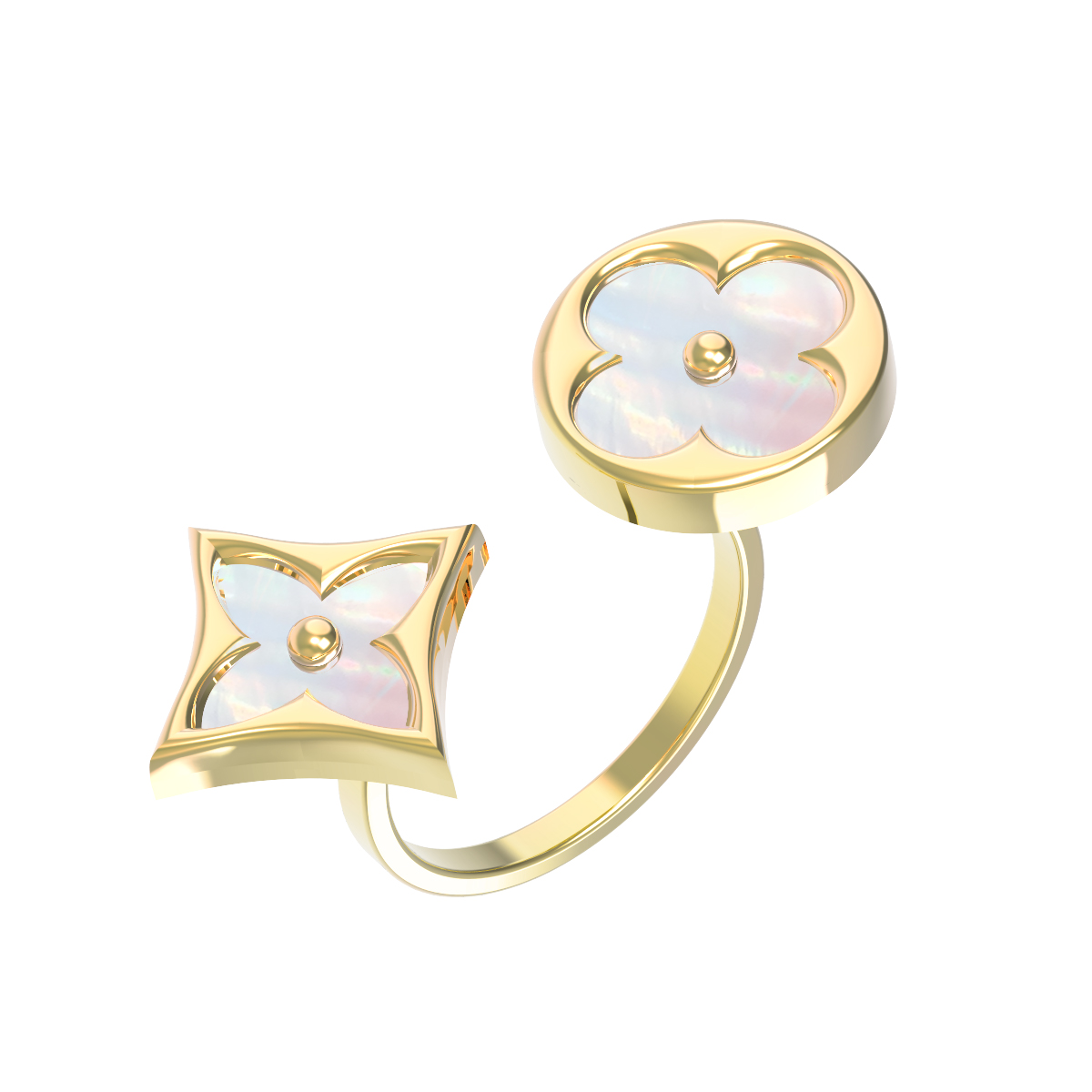 Изящное кольцо из лимонного золота 585 пробы из коллекции De Luxe — Амальфи станет воплощением вашего безупречного вкуса. Дизайнеры ювелирного дома создали украшение с уникальным характером: разомкнутая шинка изделия завершается двумя декоративными элементами в форме клевера, которые гармонично сочетают в себе мягкие линии круга и строгую геометрию ромба. Лимонный оттенок золота придает аксессуару особенное благородство и солнечный блеск, который идеально подчеркивает перламутр, используемый в качестве вставок.