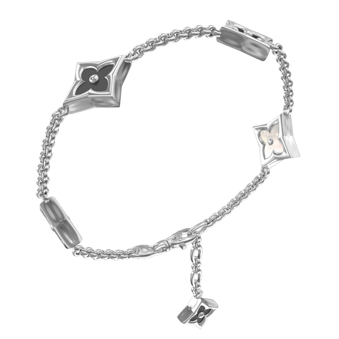 Изысканный браслет из коллекции De Luxe — Амальфи воплощает в себе гармонию контрастов и утонченную эстетику. Это украшение выполнено из благородного белого золота 585 пробы, чей холодный блеск идеально подчеркивает глубину вставок. Дизайн модели обыгрывает популярный мотив клевера, где каждая из 5 вставок имеет выразительную форму ромба. Чередование черного оникса и нежного перламутра создает запоминающийся визуальный эффект, превращая изделие в стильный акцент вашего образа.