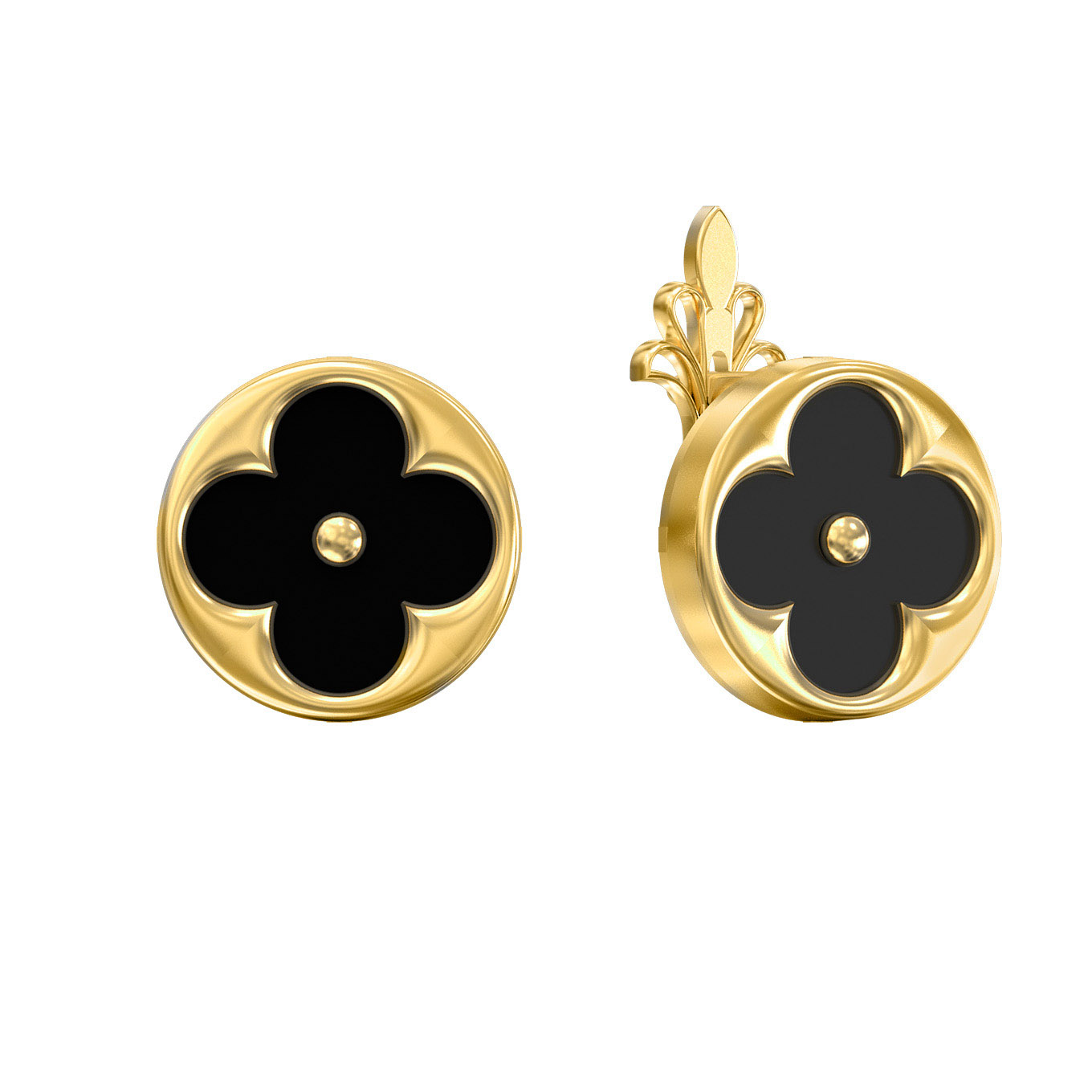 Серьги из лимонного золота 585 пробы из коллекции De Luxe — Амальфи представляют собой воплощение изысканности и утонченного стиля. Центральным элементом украшения выступает глубокий черный оникс, который идеально контрастирует с благородным блеском металла. Дизайнерское решение в форме клевера придает изделию особое очарование, превращая его в символ удачи и статуса.