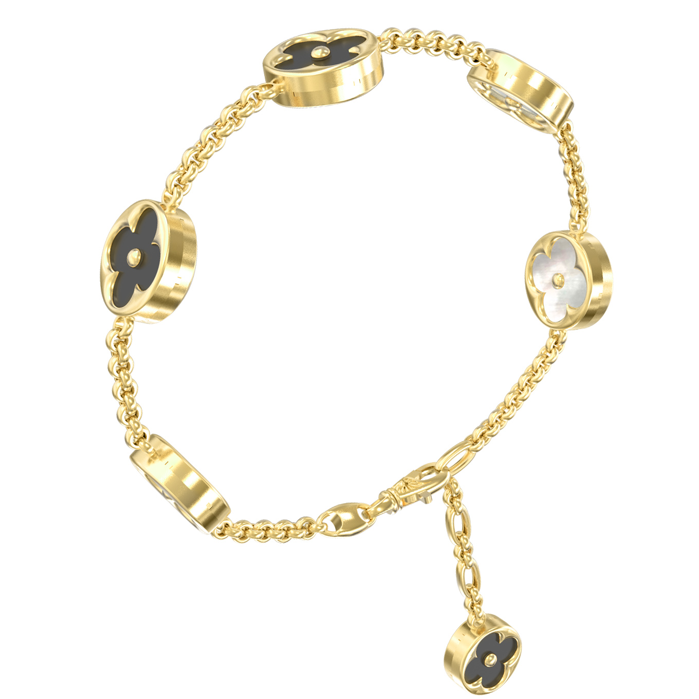 Браслет из лимонного золота 585 пробы c ониксом и перламутром