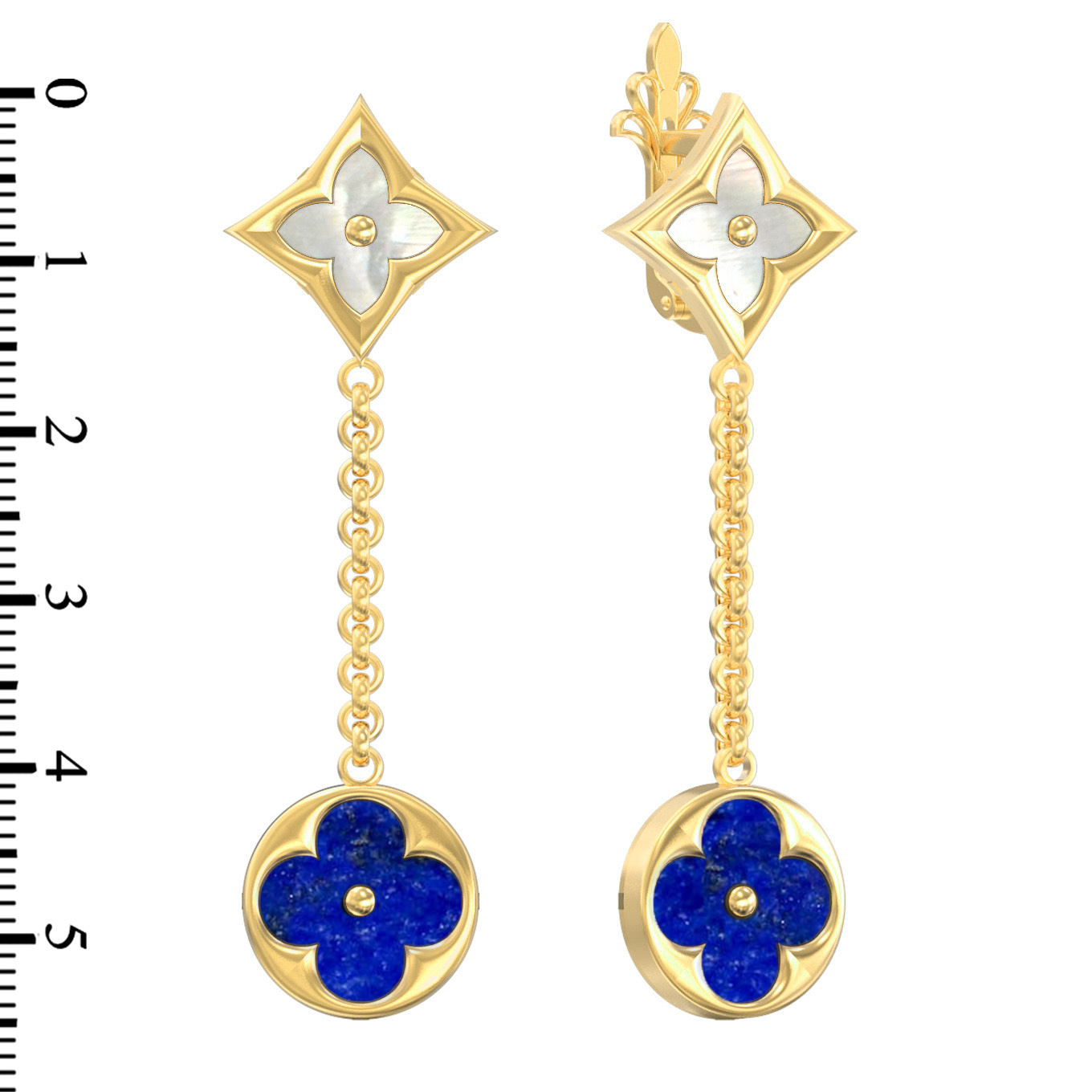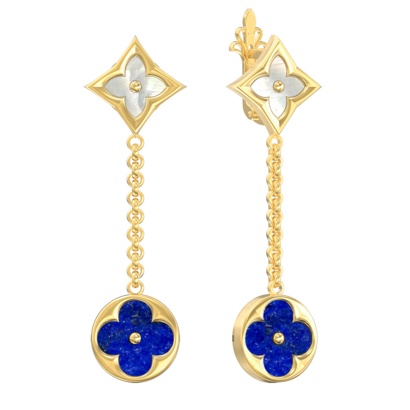 Серьги из лимонного золота 585 пробы c лазуритом и перламутром