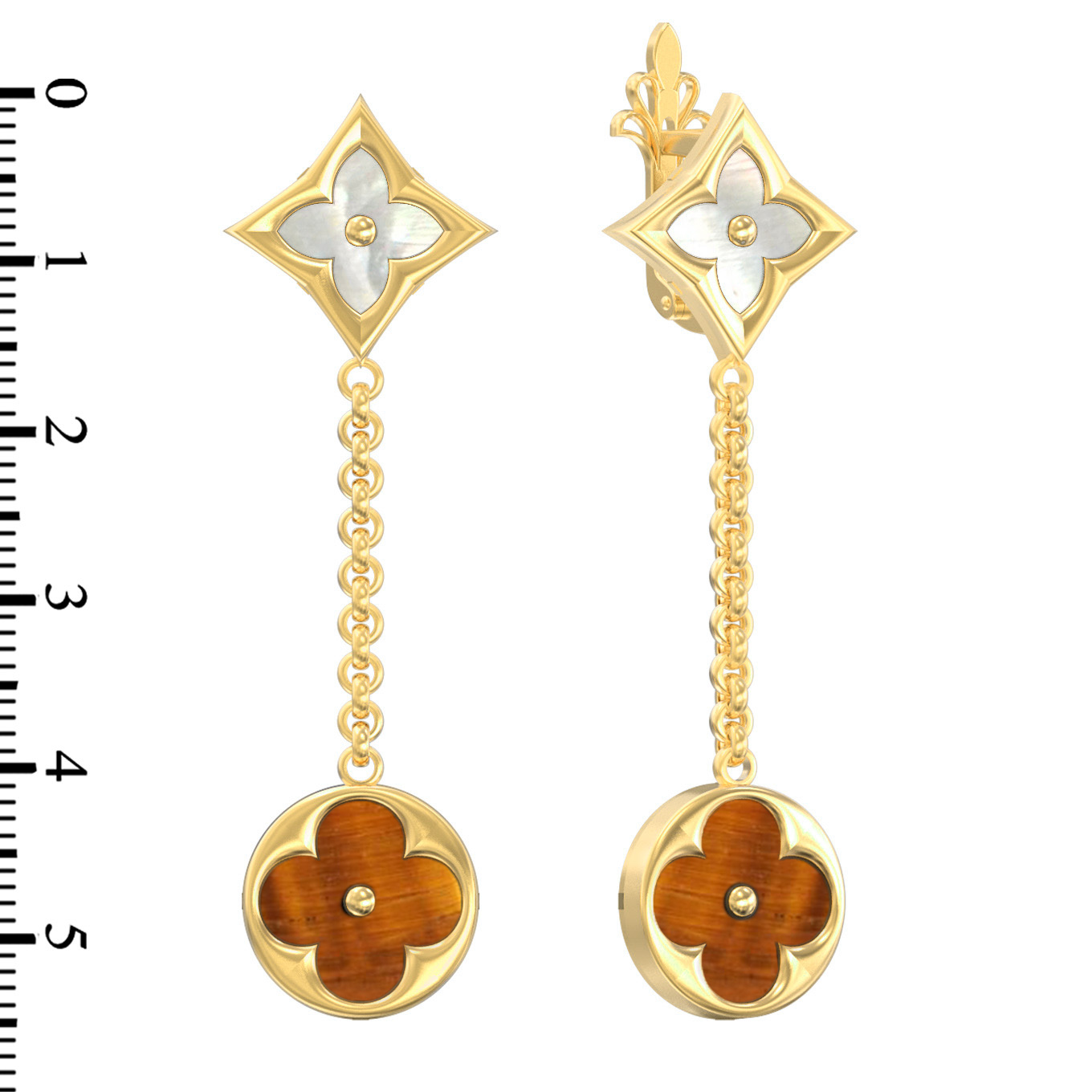 Серьги из лимонного золота 585 пробы c тигровым глазом и перламутром