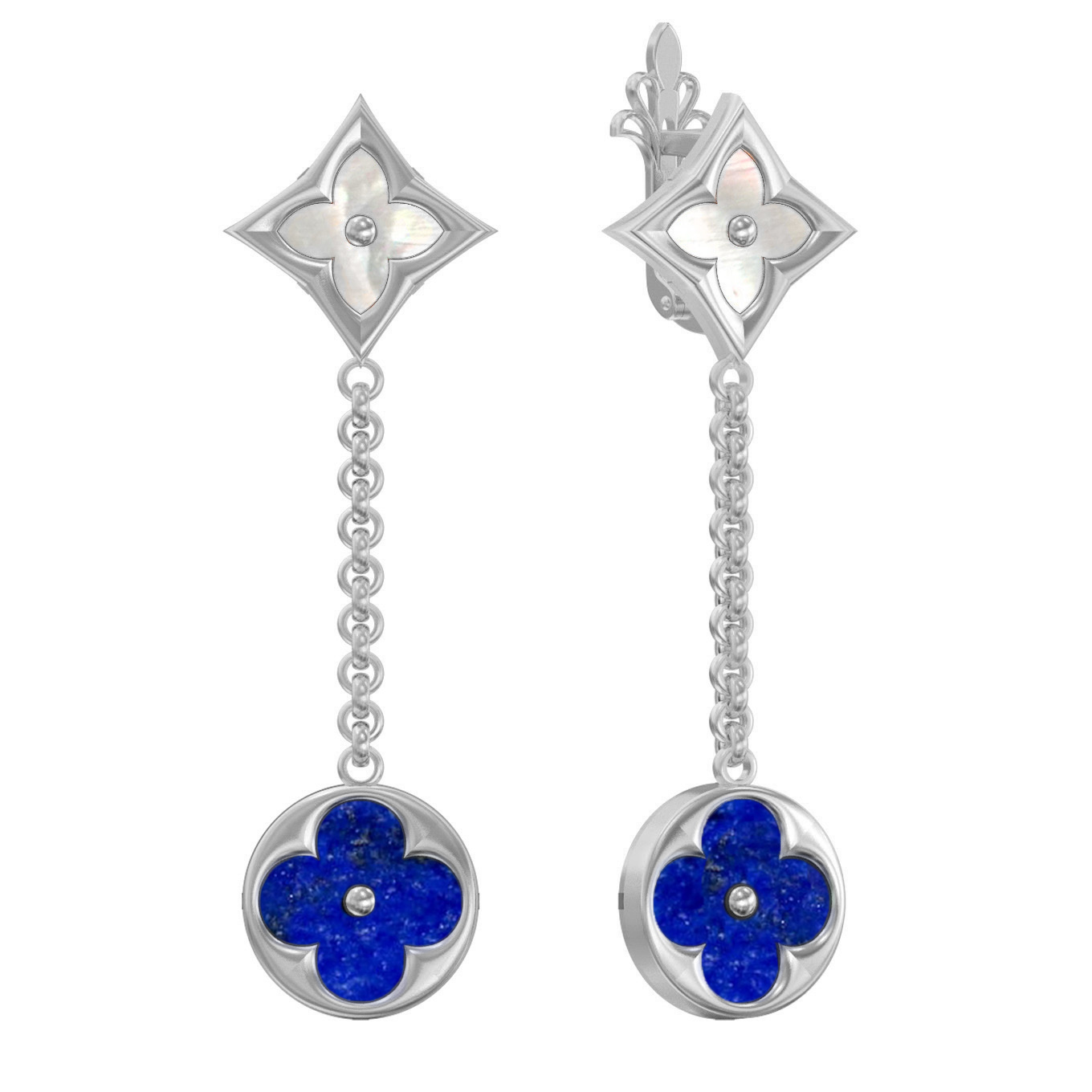 Серьги из белого золота 585 пробы c лазуритом и перламутром