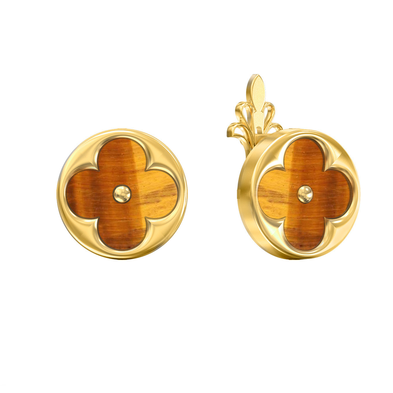 Серьги из лимонного золота 585 пробы c тигровым глазом