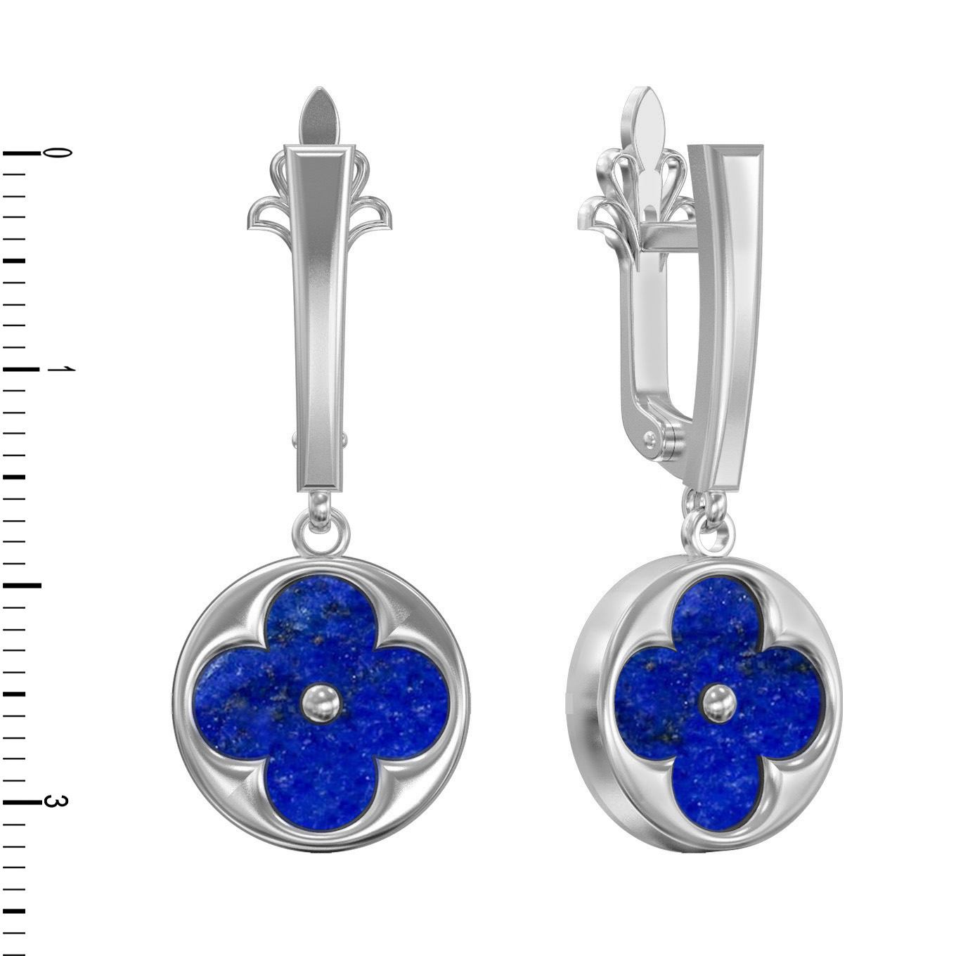Каждая серьга инкрустирована круглой вставкой лазурита, создавая гармоничный акцент в общем дизайне. Всего в изделии использовано 2 вставки, которые объединяют ювелирное мастерство и природную эстетику. Белый цвет материала обеспечивает изделию современный и строгий вид, позволяя легко сочетать серьги с другими украшениями из этой же серии. Эти серьги — готовое решение для тех, кто предпочитает стильные комплекты и ценит высокое качество ювелирных украшений. Изделие сочетает в себе выверенную геометрию линий и выразительность камня, что делает его достойным дополнением любой коллекции аксессуаров.