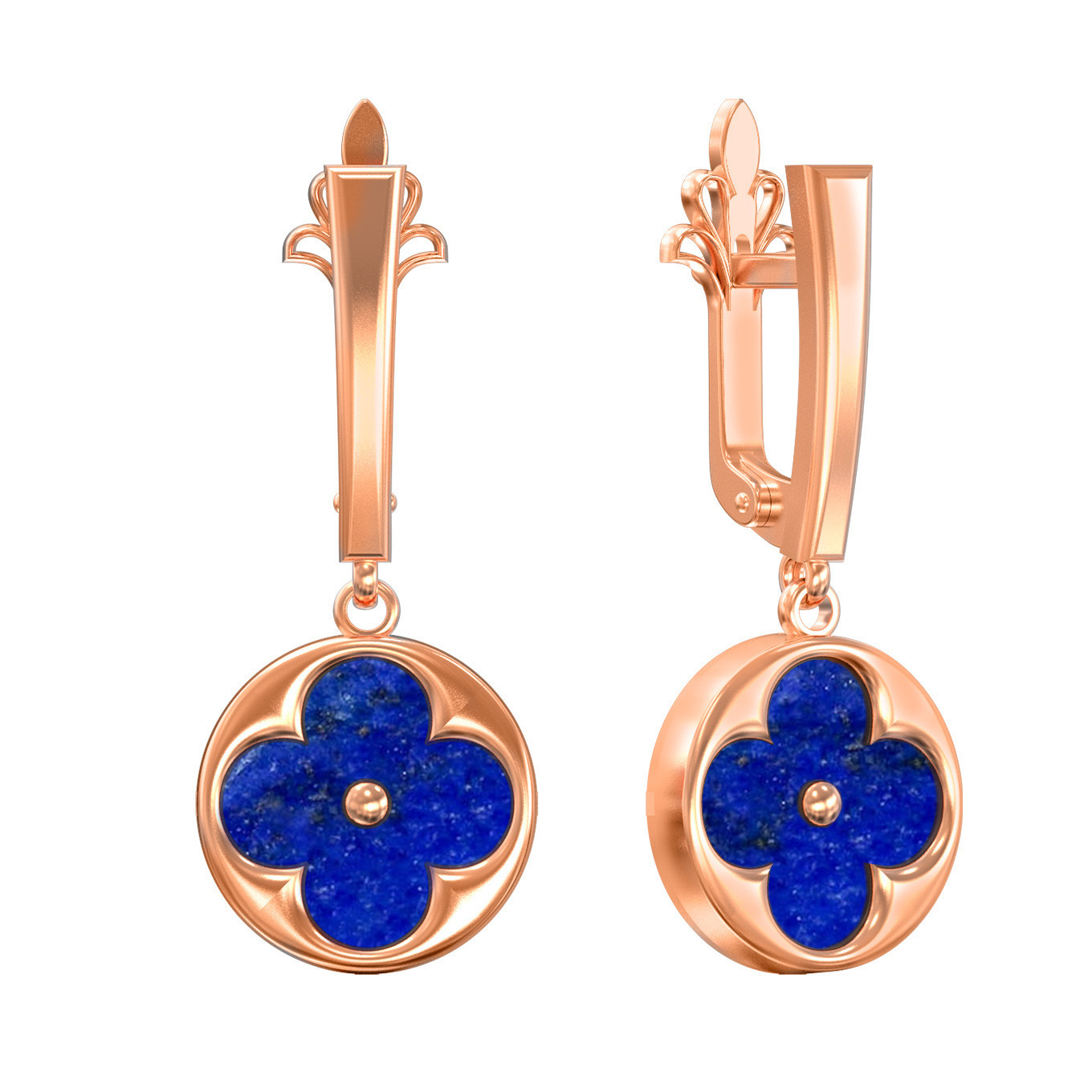 Серьги из красного золота 585 пробы c лазуритом