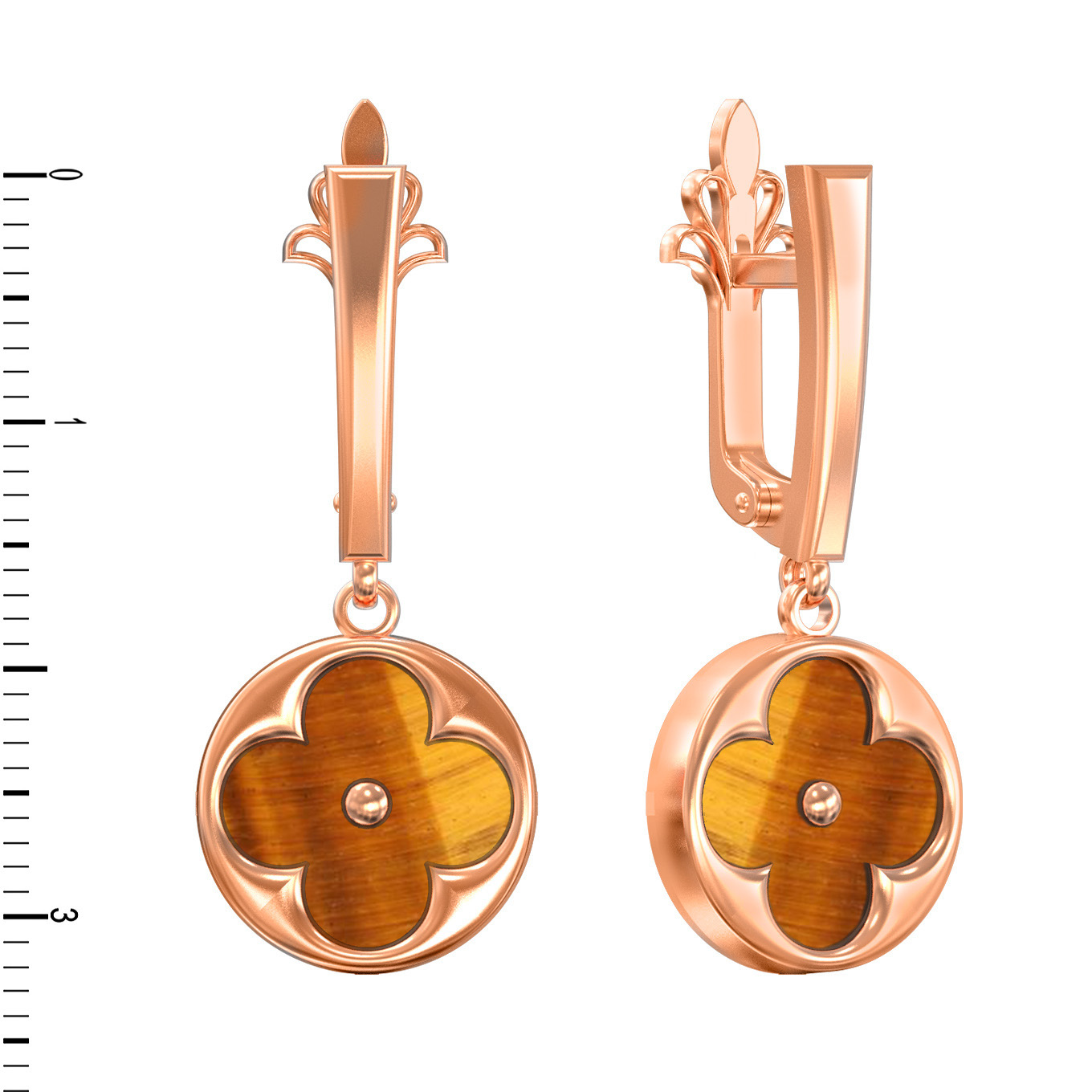 Серьги из красного золота 585 пробы c тигровым глазом