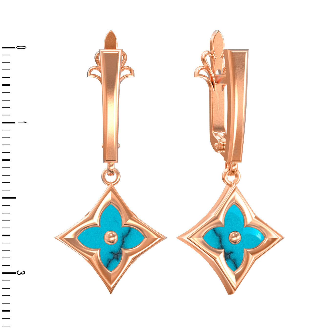 Серьги из красного золота 585 пробы c бирюзой