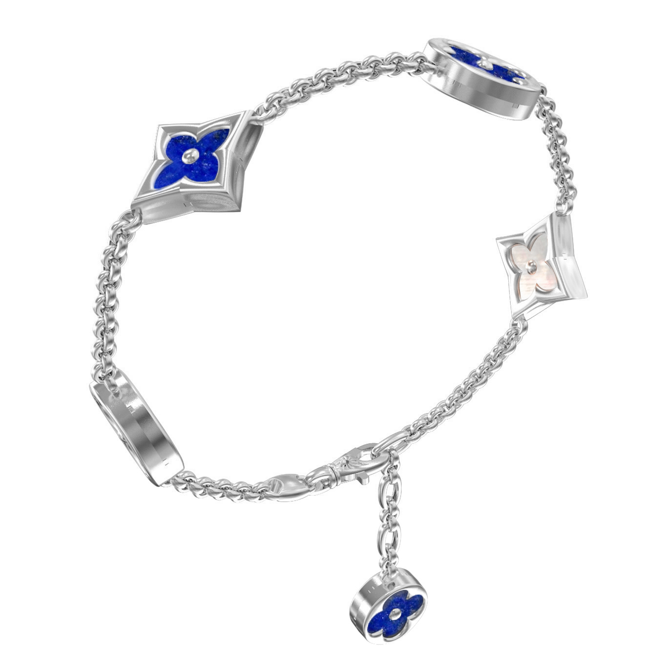 Браслет из белого золота 585 пробы c лазуритом и перламутром