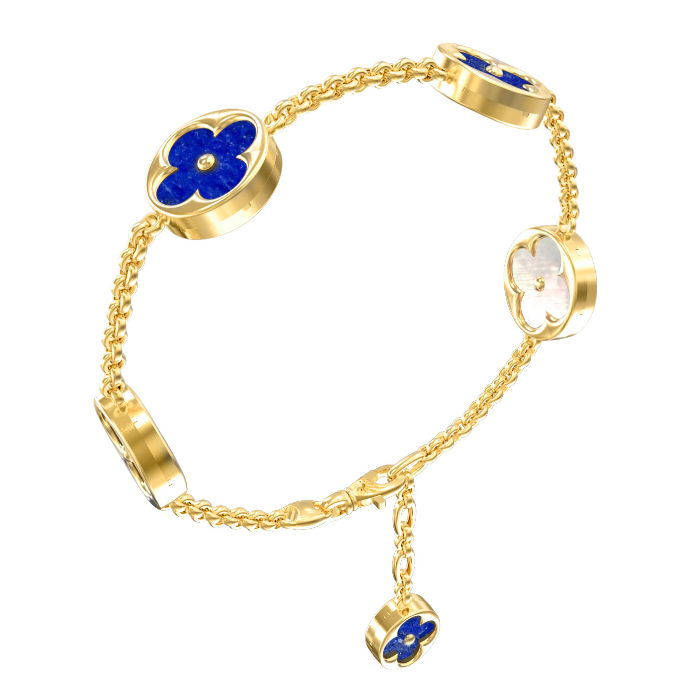Браслет из лимонного золота 585 пробы c лазуритом и перламутром