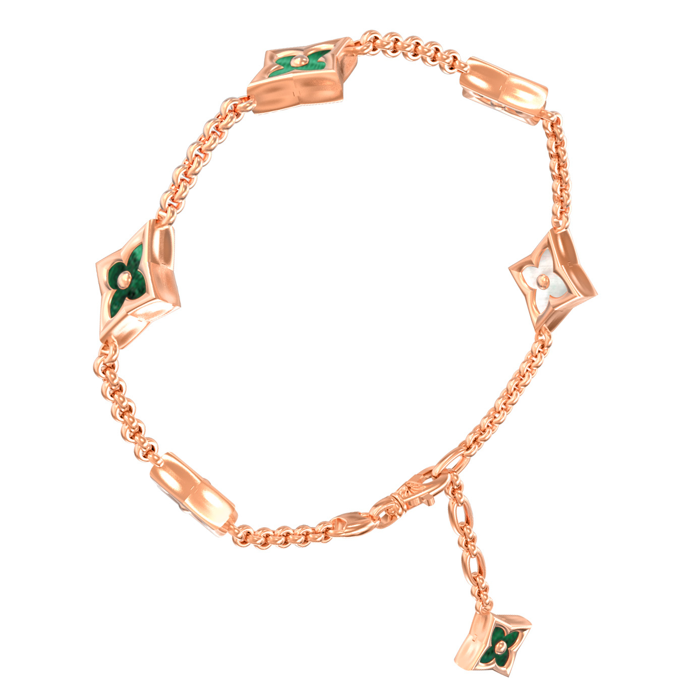 Браслет из красного золота 585 пробы c малахитом и перламутром
