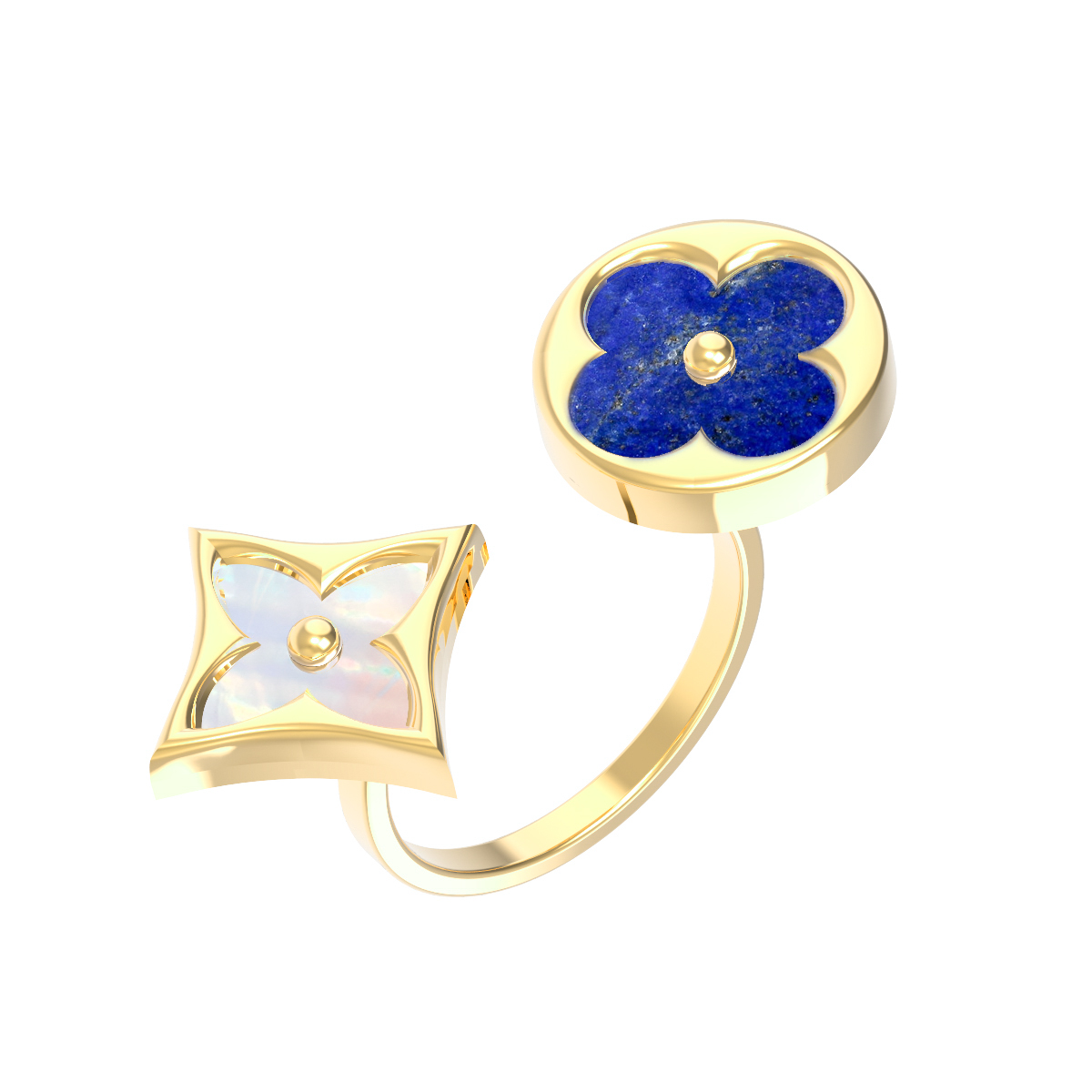 Кольцо из лимонного золота 585 пробы c лазуритом и перламутром