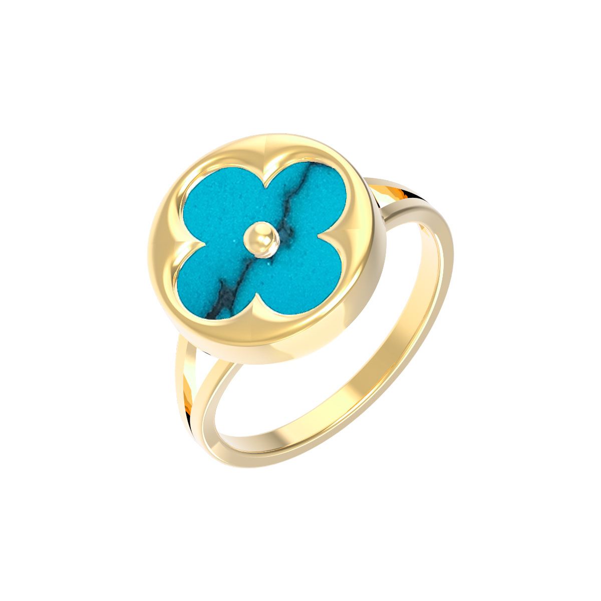 Кольцо из лимонного золота 585 пробы c бирюзой