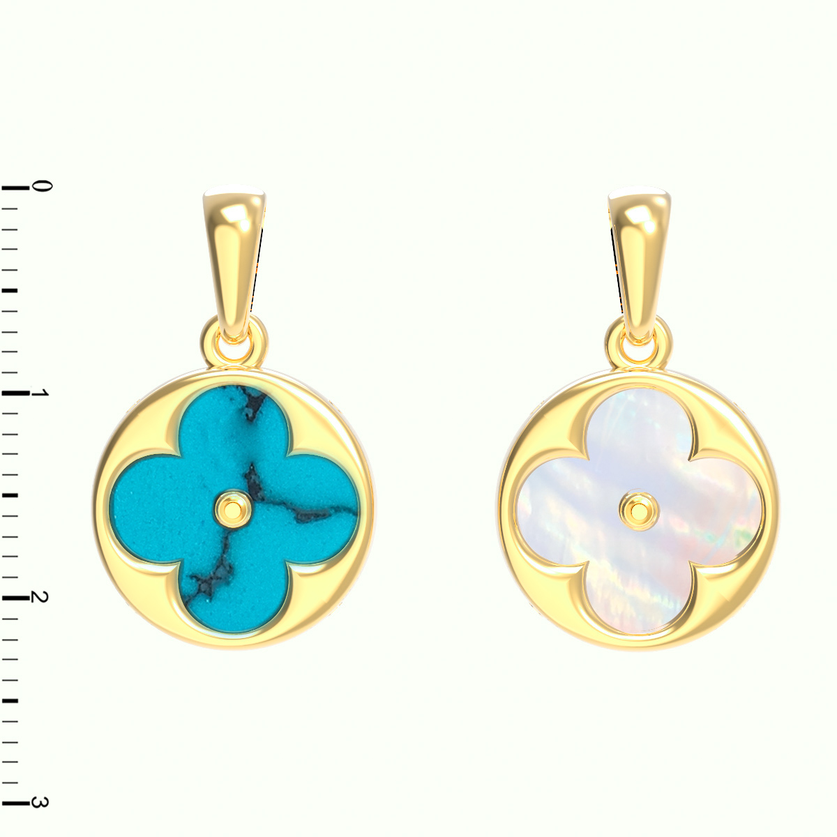 Особенность этого ювелирного изделия заключается в его универсальности: подвеска украшена вставкой в форме круга, где сочетаются насыщенная бирюза и нежный перламутр. Бирюзовый цвет камня дарит ощущение свежести, а перламутровое сияние добавляет украшению глубины и элегантности. Это уникальное сочетание позволяет носить подвеску как самостоятельный акцент, так и в рамках продуманных комплектов.