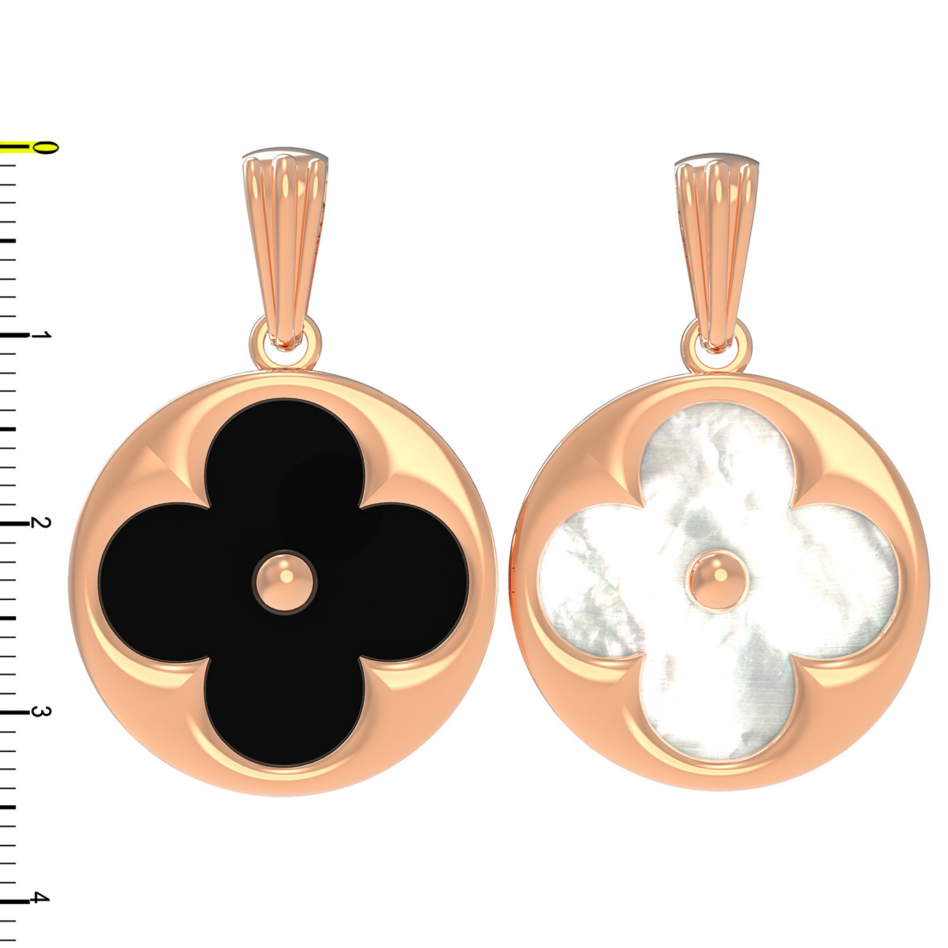 Особую выразительность подвеске придает контрастное сочетание вставок: глубокого черного оникса и нежного перламутра. Форма вставок круг подчеркивает геометрию изделия, создавая визуальный баланс. В дизайне предусмотрена одна вставка, которая гармонично вписана в золотую основу. Теплый оттенок красного золота превосходно сочетается как с таинственным черным цветом оникса, так и с сияющим перламутром, переливающимся природными оттенками.