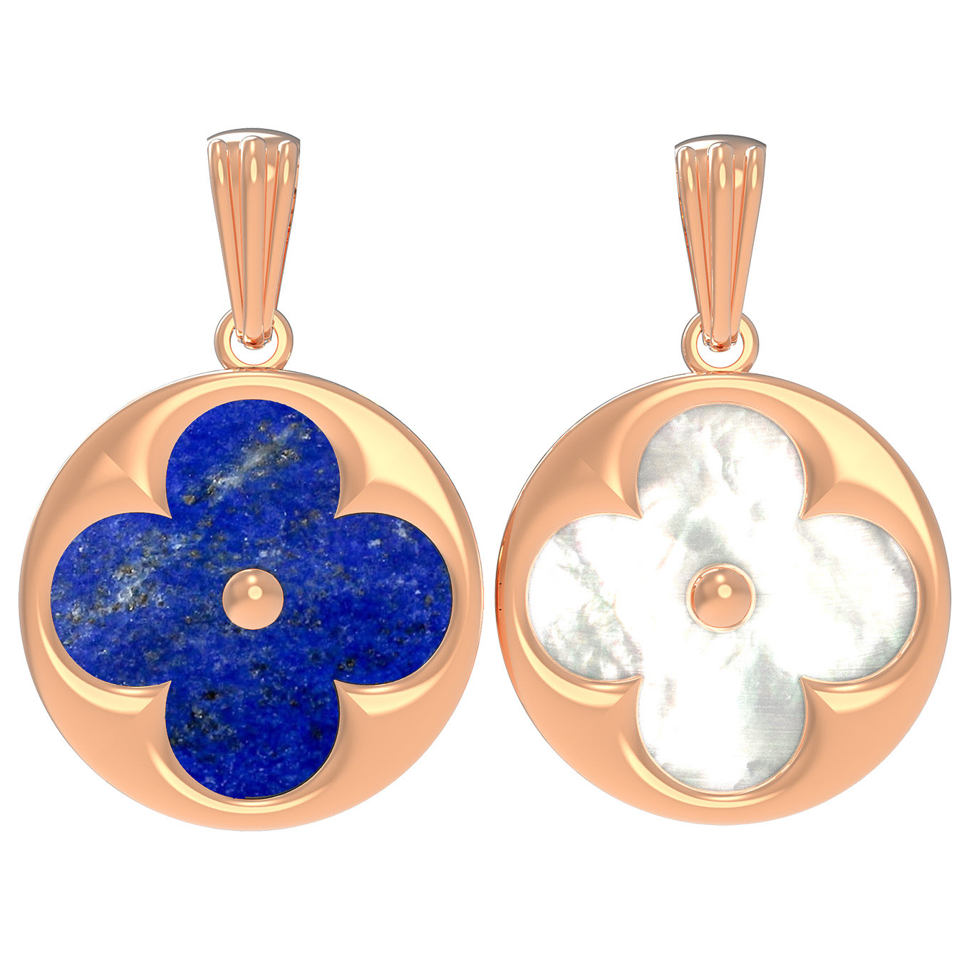 Элегантная подвеска из красного золота 585 пробы станет утонченным акцентом в вашем образе. Дизайн изделия выполнен в популярной и символичной форме клевера, что придает украшению особую эстетическую привлекательность. Центральным элементом композиции является одна круглая вставка из натурального лазурита глубокого синего цвета или изысканного перламутра с нежным переливом, создавая благородный контраст с теплым оттенком красного золота.