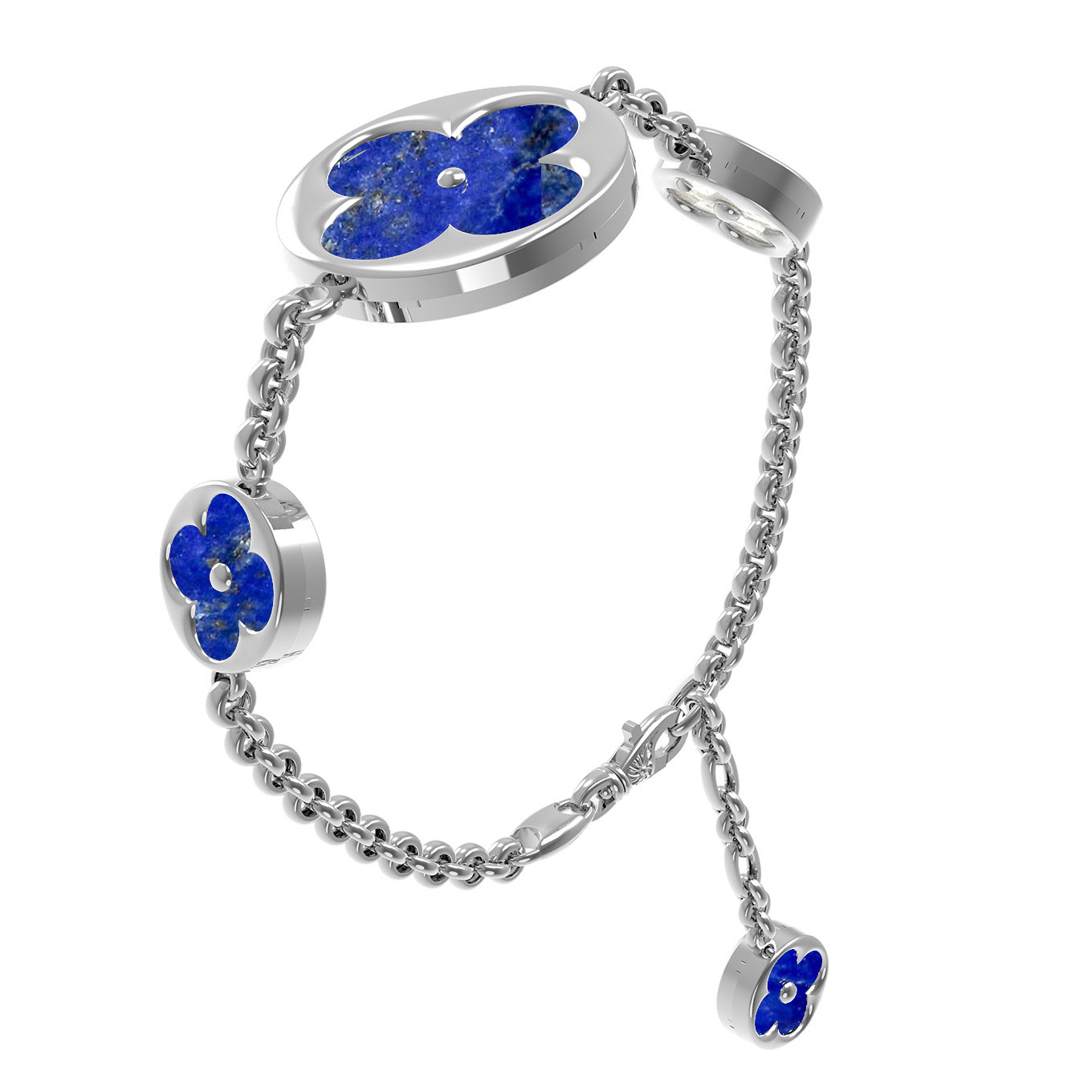 Браслет из белого золота 585 пробы c лазуритом и перламутром