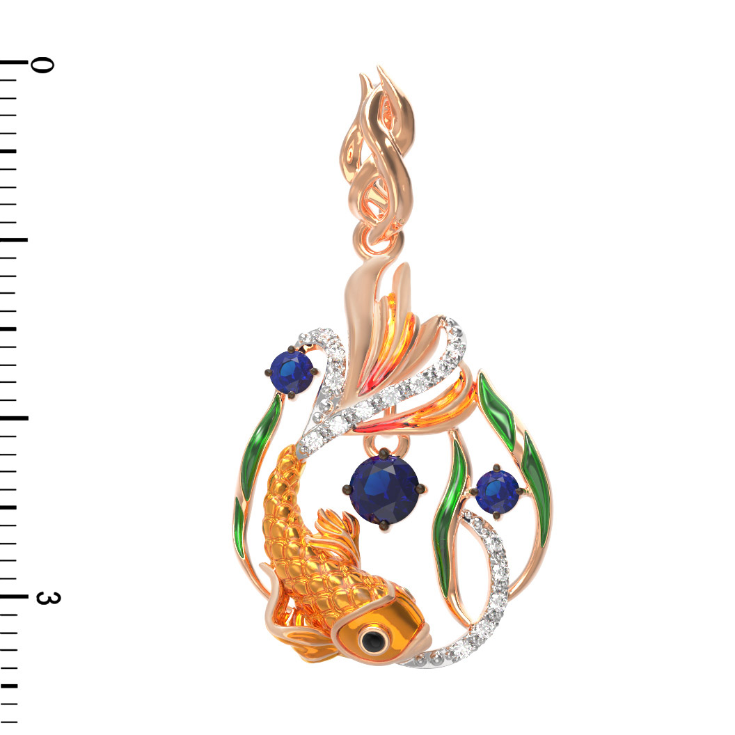 Подвеска из красного золота 585 пробы c эмалью, фианитом и сапфиром