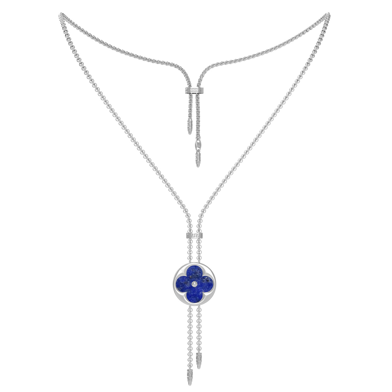 Элегантное колье из белого золота 585 пробы станет ярким акцентом вашего образа, подчеркивая безупречный вкус и статус. Украшение из коллекции De Luxe — Амальфи выполнено в стиле клевер, который давно стал символом удачи и изысканности. Центром композиции является декоративный элемент круглой формы, внутри которого гармонично сочетаются насыщенный синий лазурит и нежный перламутр. Благодаря сдержанному, но эффектному дизайну, данная модель является универсальным аксессуаром, подходящим как для женщин, так и для мужчин.