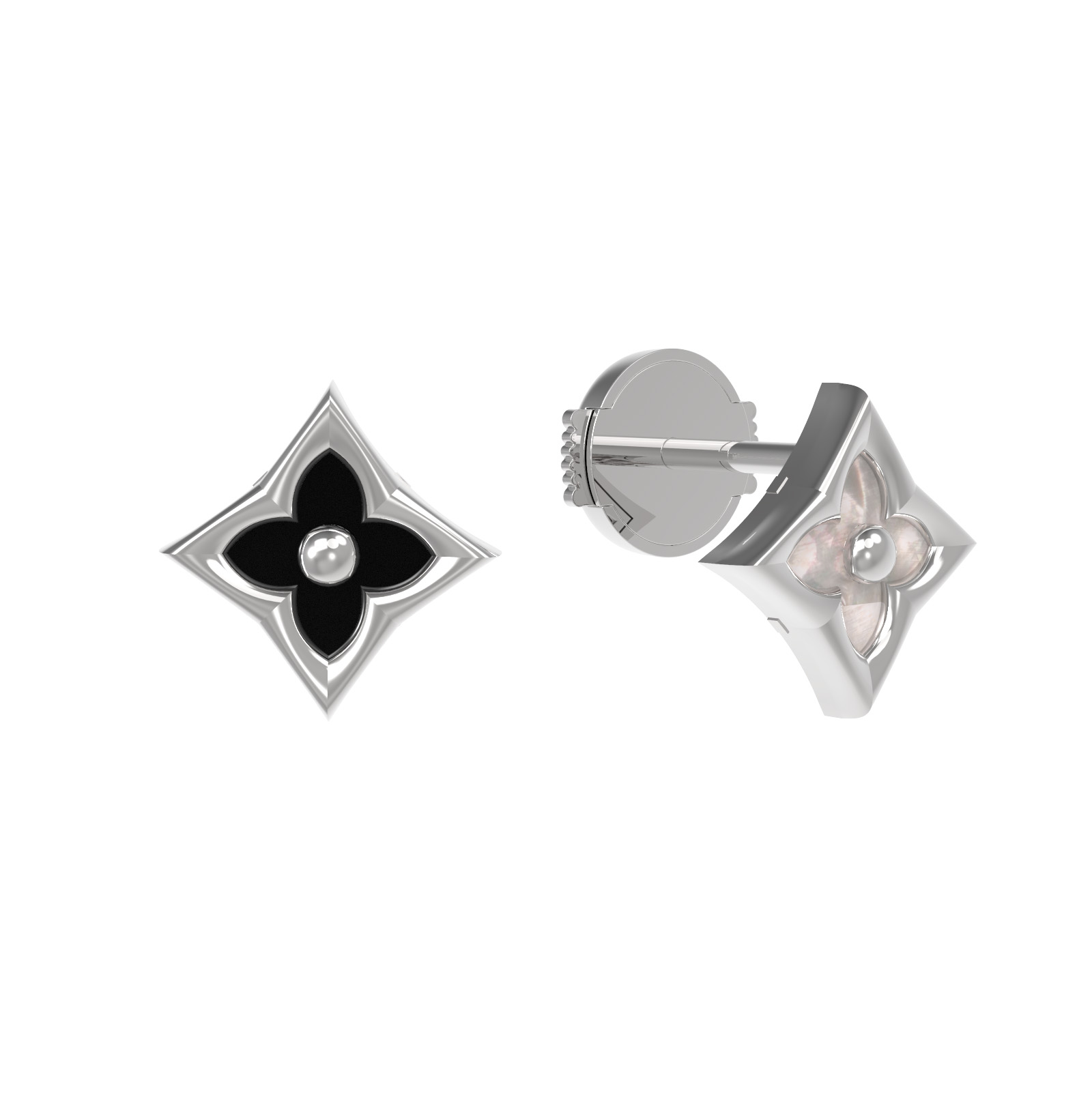 Серьги из белого золота c ониксом и перламутром