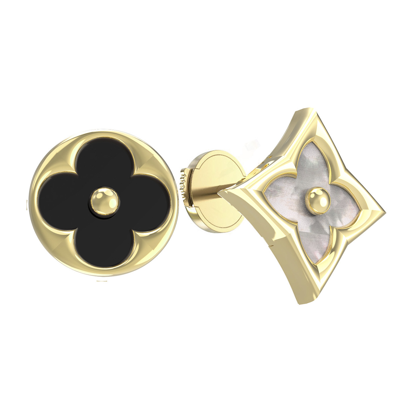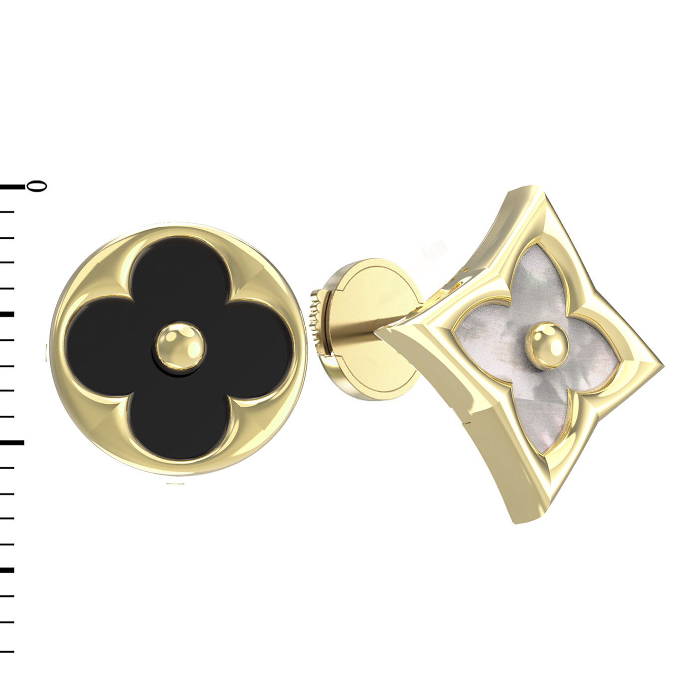 Серьги из лимонного золота 585 пробы c ониксом и перламутром