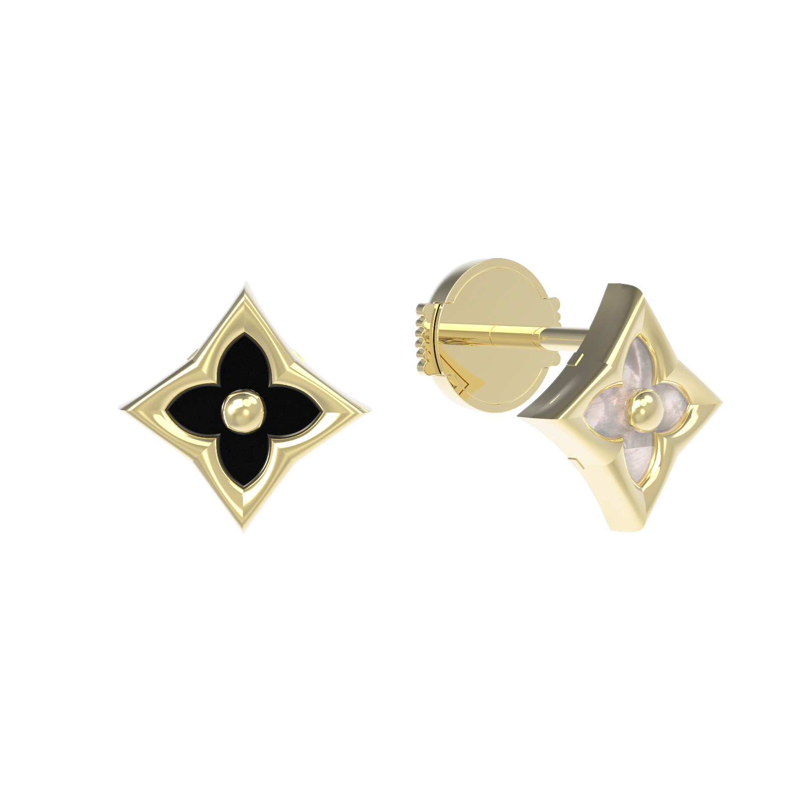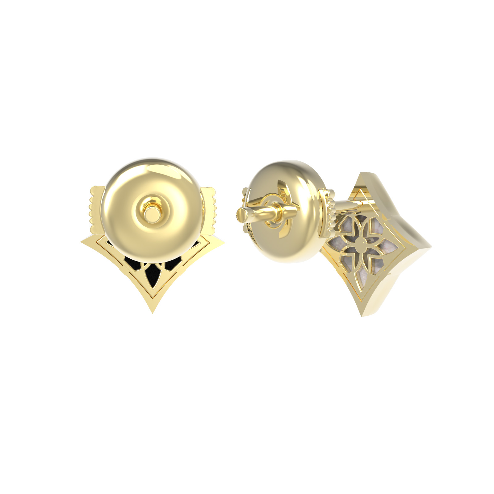 Серьги из лимонного золота 585 пробы c ониксом и перламутром