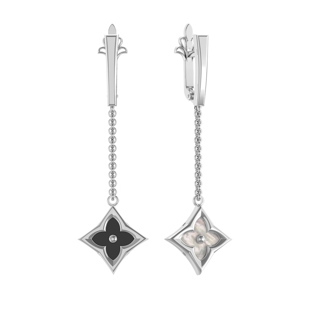 Серьги из белого золота 585 пробы из коллекции De Luxe — Амальфи — это воплощение изящества и современного стиля, созданные для тех, кто ценит эстетическую завершенность образа. Дизайн украшения выполнен в популярной тематике клевер, которая давно стала символом удачи и утонченного вкуса. Особую выразительность модели придает сочетание контрастных материалов: глубокий черный оникс и нежный переливающийся перламутр гармонично дополняют друг друга, создавая эффектный визуальный акцент.