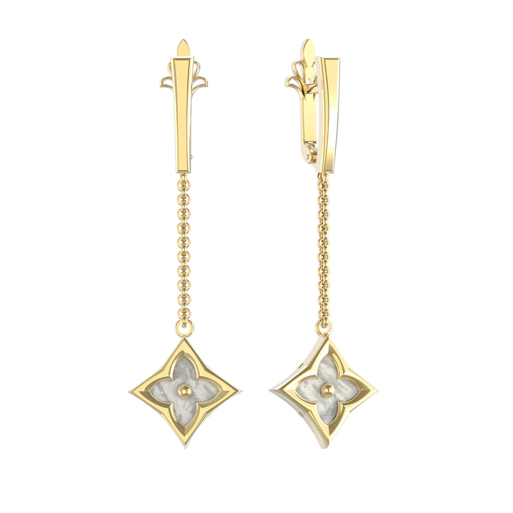 Серьги из лимонного золота 585 пробы c перламутром