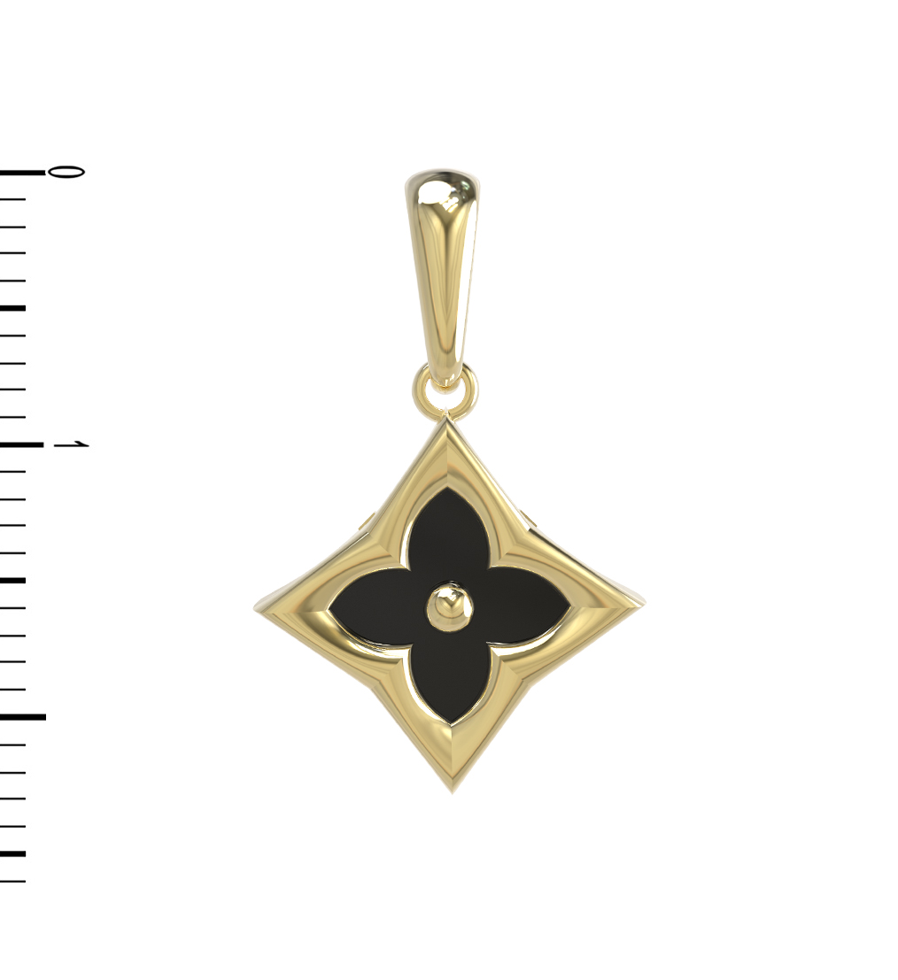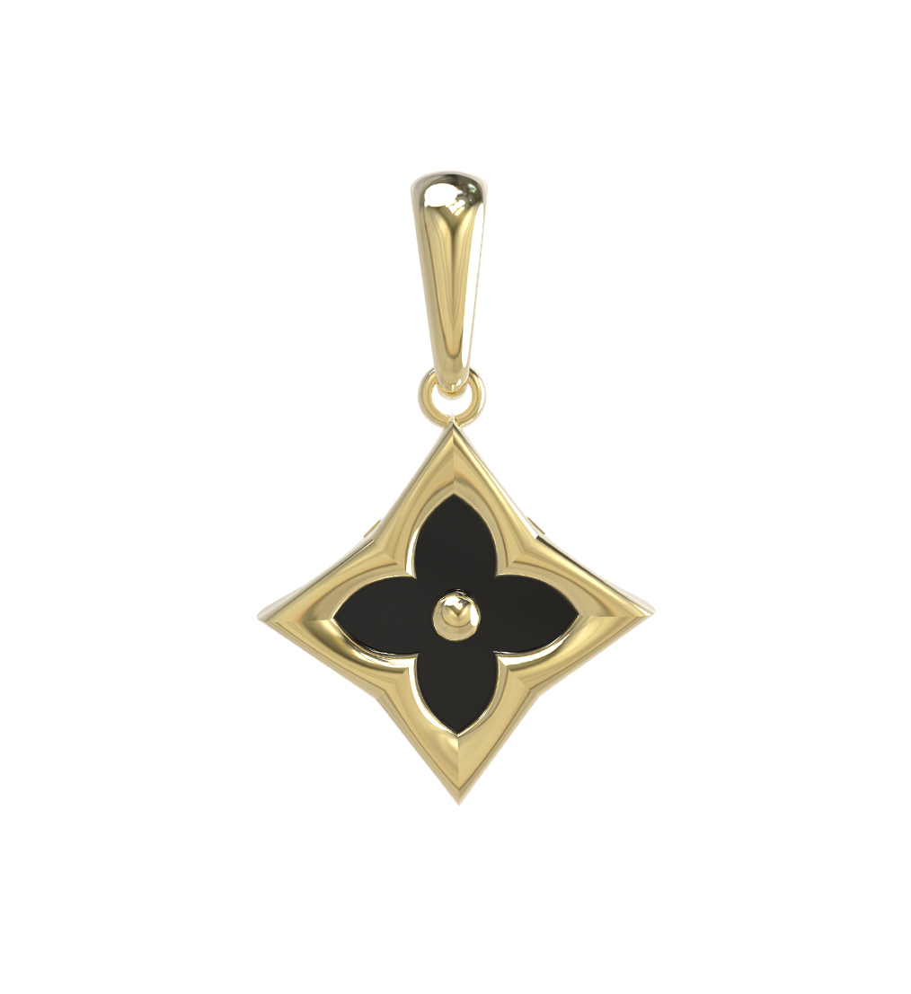 Подвеска из лимонного золота 585 пробы — это изысканное сочетание благородного металла и глубокого, насыщенного цвета. Аксессуар выполнен в дизайне клевер, который давно стал символом элегантности и удачи, дополняя ваш образ нотками стиля и уверенности. Центральным элементом украшения выступает вставка из оникса черного цвета, имеющая эффектную форму ромба. Одна вставка идеально вписана в золотую основу, создавая гармоничный контраст между теплым оттенком лимонного золота и строгим темным камнем.