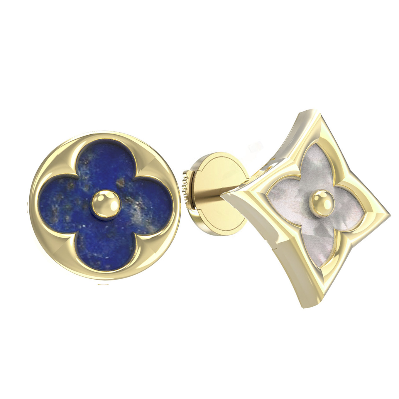 Серьги из лимонного золота 585 пробы c лазуритом и перламутром