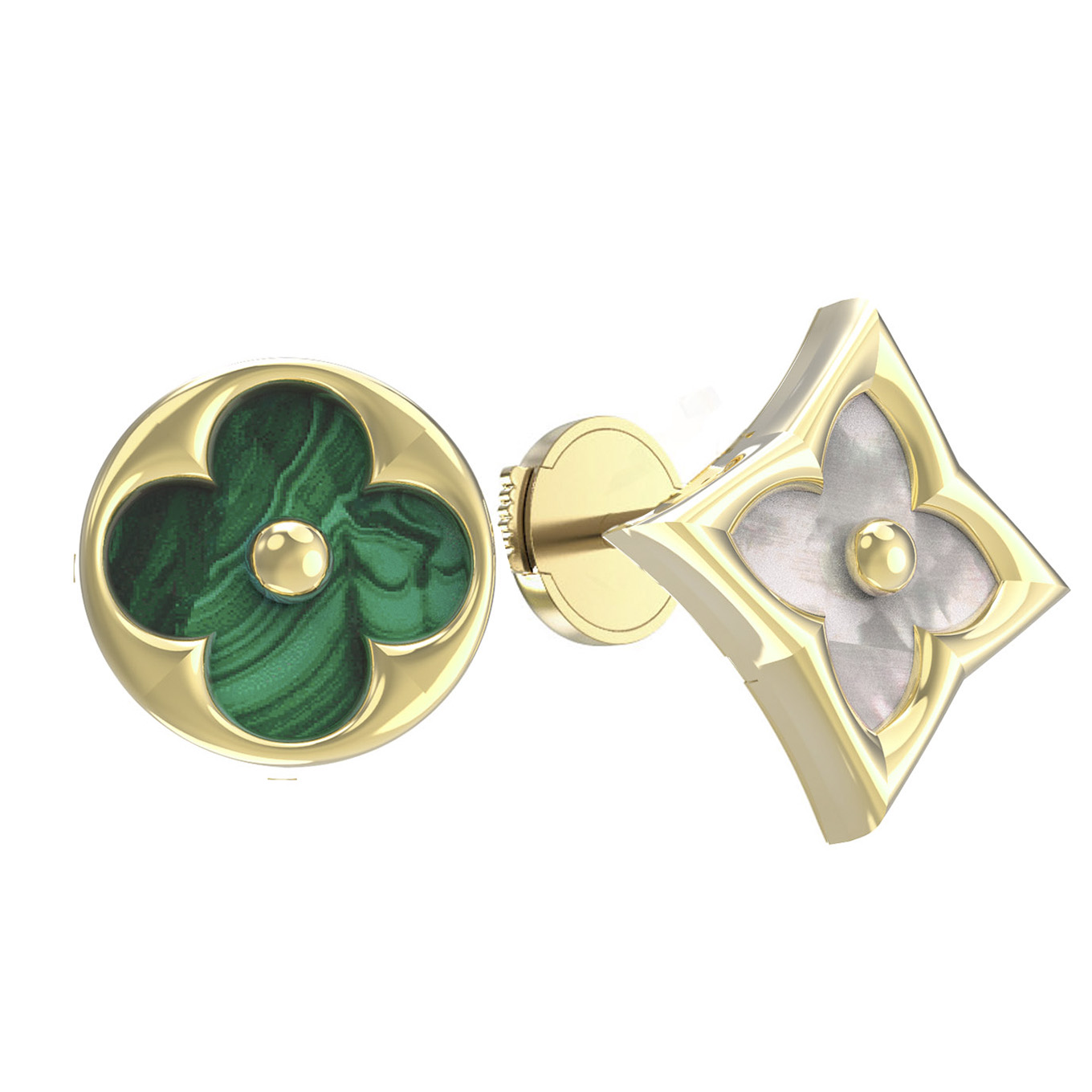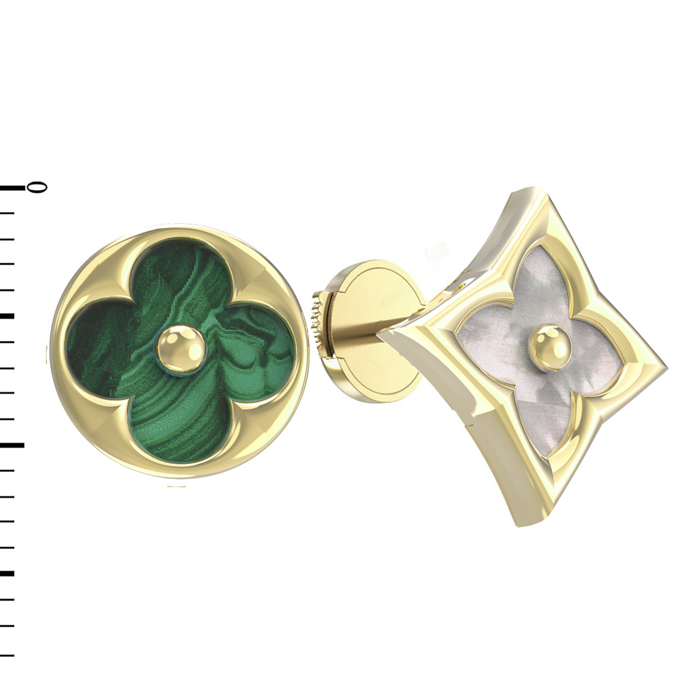 Серьги из лимонного золота 585 пробы c малахитом и перламутром
