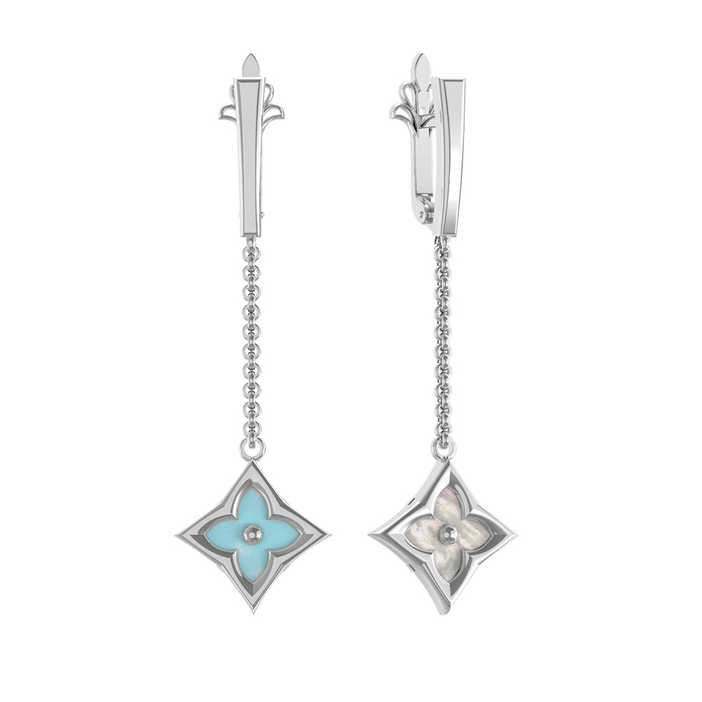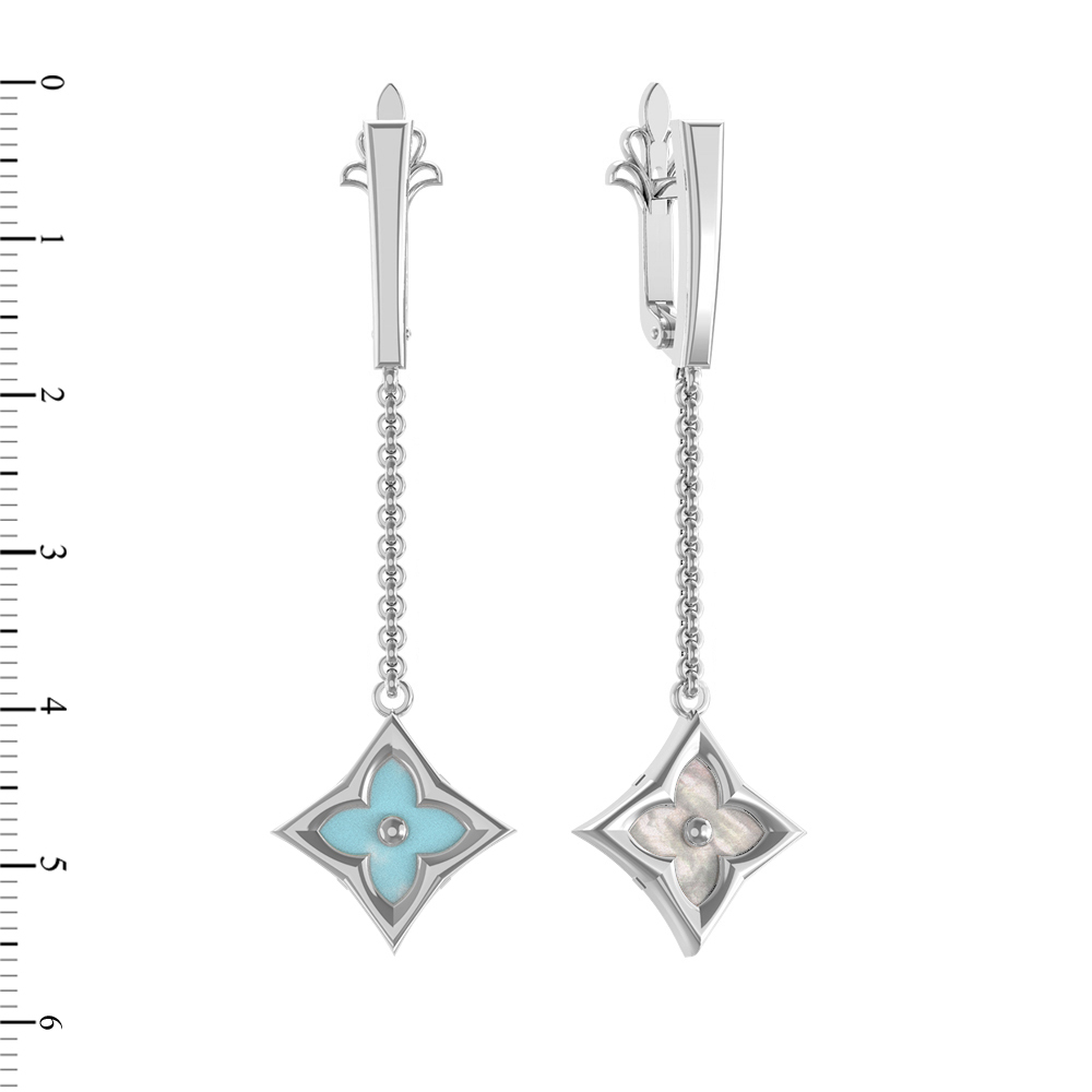 Серьги из белого золота 585 пробы c бирюзой и перламутром