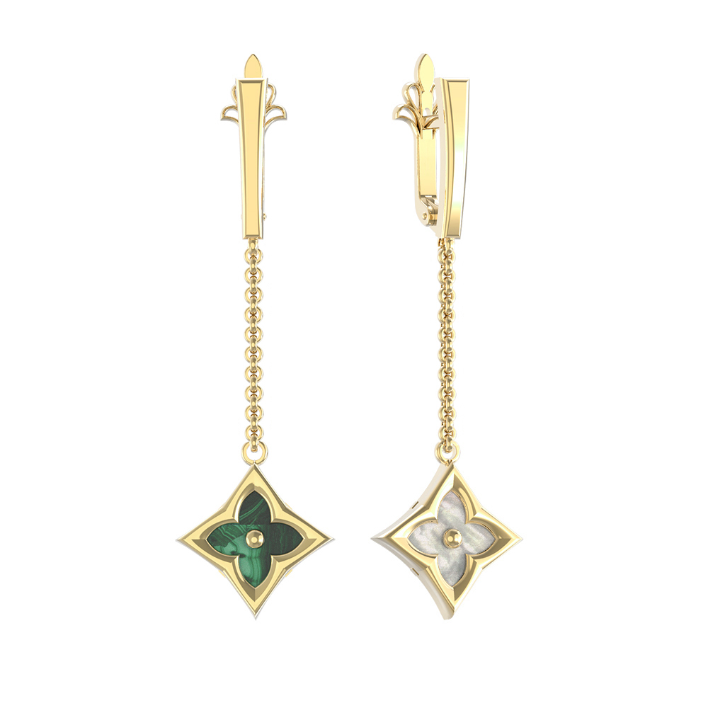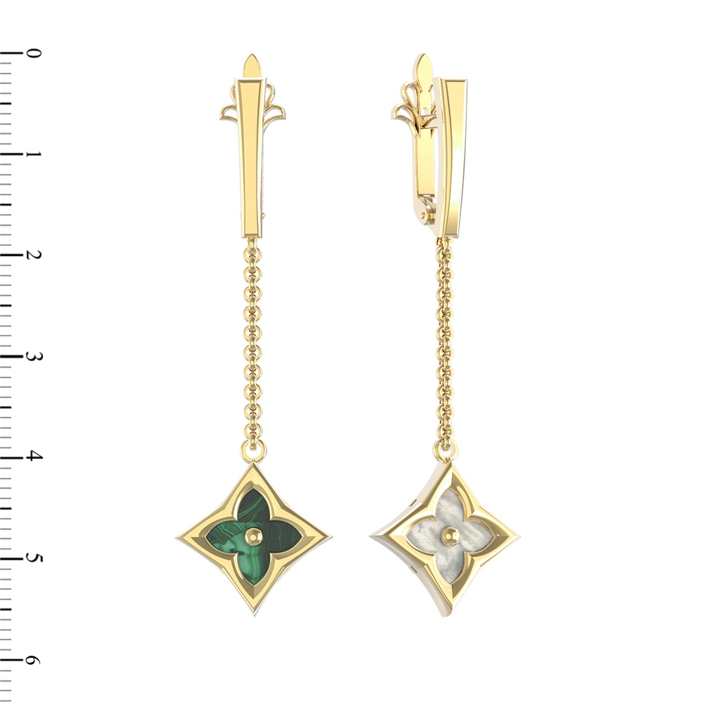 Серьги из лимонного золота c малахитом и перламутром