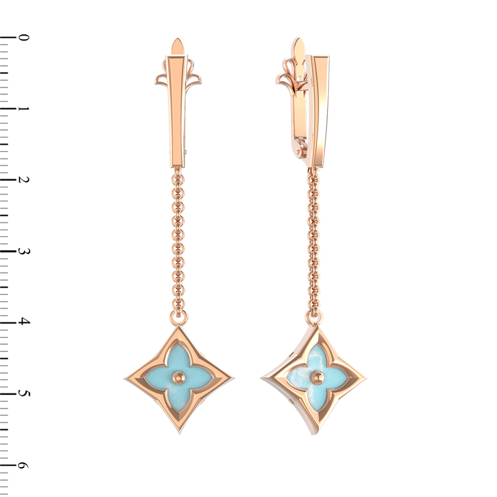 Серьги из красного золота 585 пробы c бирюзой